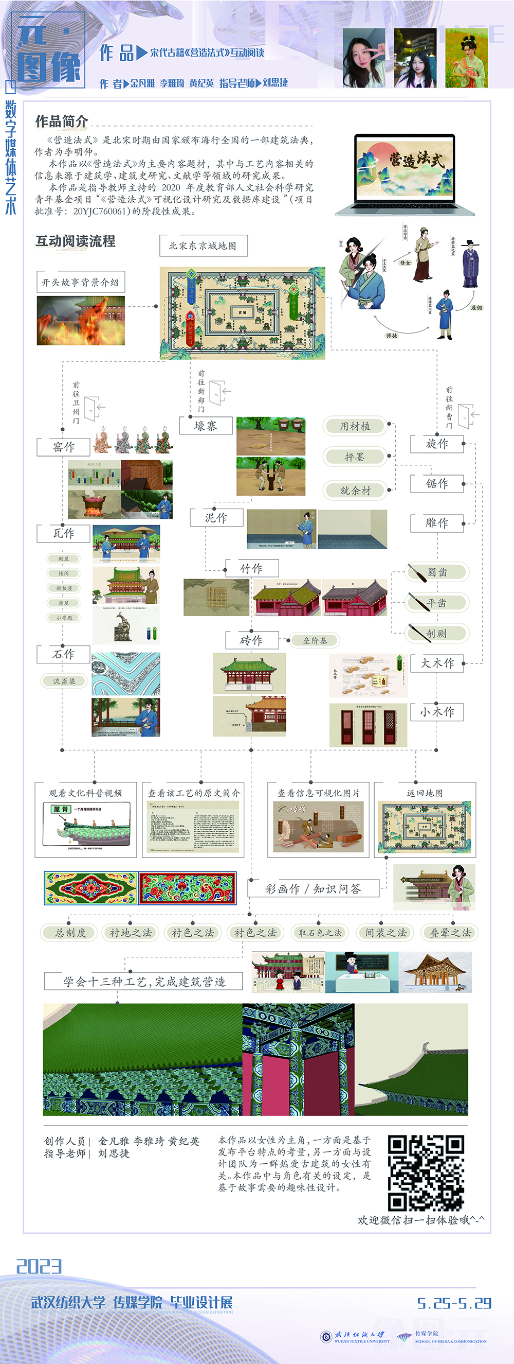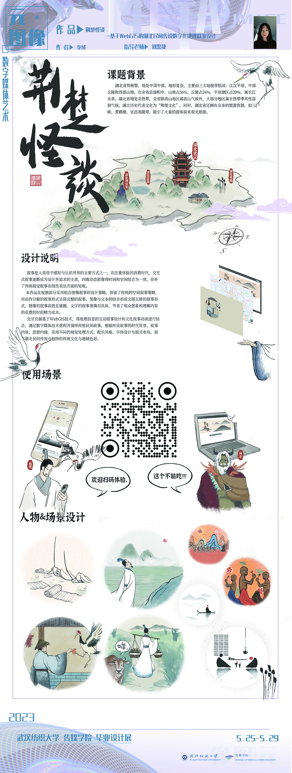 武汉印象 2015.05.02 武汉是一座历史悠久、富含文化底蕴的城市,作者通过对武汉较有代表性的8个符号进行的创作,它们分别是黄鹤楼、古琴台、归元寺、编钟、热干面、豆皮、水饺和鸡汤,它们即代表了武汉的博大渊远,也体现了武汉的聪慧细腻。对选取的题目作者采用电子图书的形式展现,并在其中着重的运用了多媒体元素,将电子图书整体设计成为卡片的形式,以卡片的上下拖动形成翻页的形式,每张卡片以插画的形式表现,并辅以简短的文字,可以通过点击或是拖动插画进行互动,试图给读者见微知著的展现武汉的面貌。