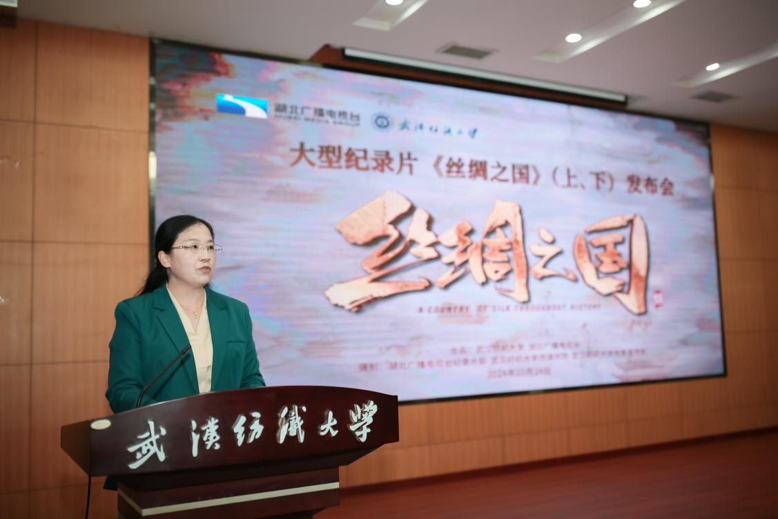 纺大伟德国际1946bv官网党委书记曾令玉主持了纪录片《丝绸之国》发布会。