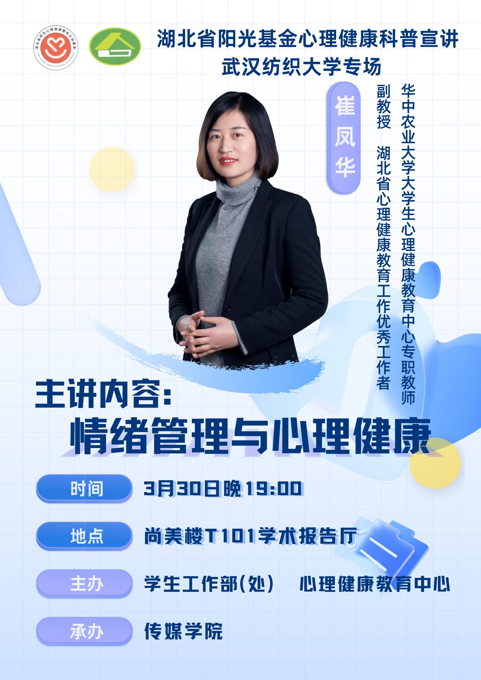 【预告】湖北省阳光基金心理健康科普宣讲:bevictor伟德官网入口专场