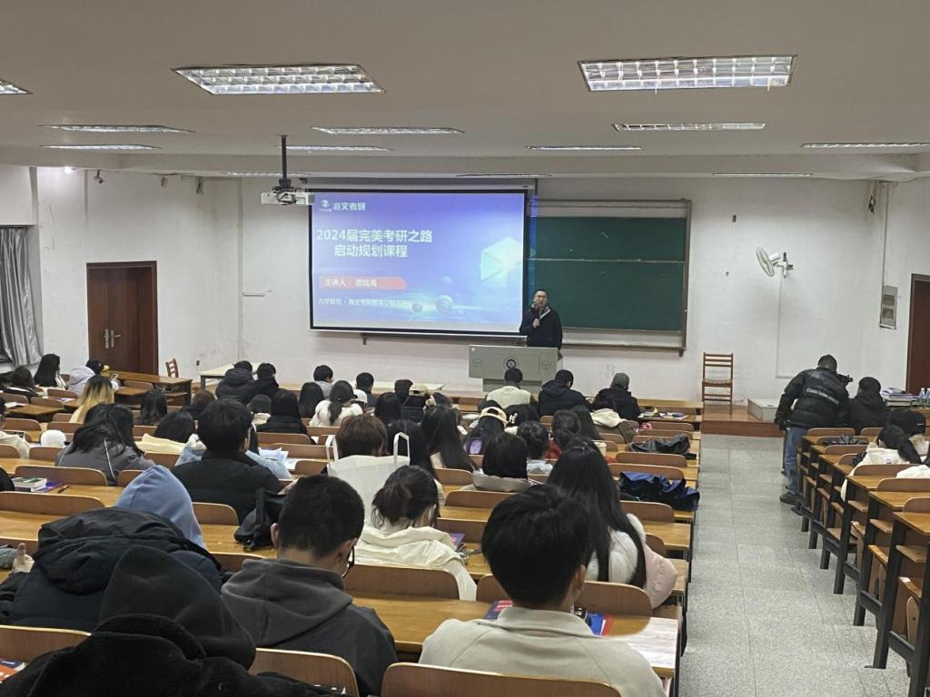 活动最后,海文考研院长、知名考研辅导专家谭晓禹老师,从2024考研宏观形势分析、院校专业选择方案、全科启动备考策略三个方面对同学们进行指导,就同学们考研目标制定、备考方法以及复试技巧等方面提供了对策建议。