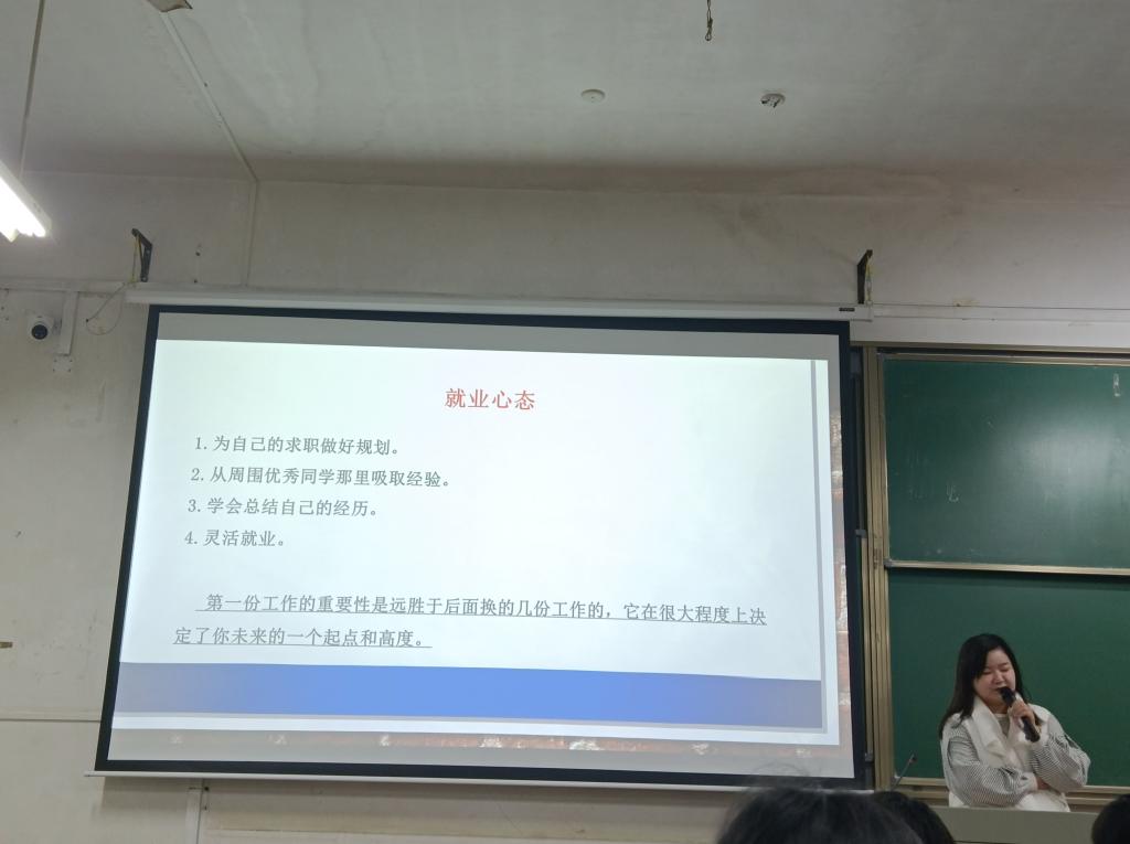 接着,谭老师鼓励毕业生:机会是留给有准备的人,以积极乐观的心态是毕业生求职的重要法宝,谁能更积极主动减压、主动适应变化,可能就越有机会实现求职梦想。她寄语同学们要为自己的求职做好规划,从周围优秀同学那里吸取宝贵经验,学会不断总结自己的过往经历并积极实现灵活就业。
