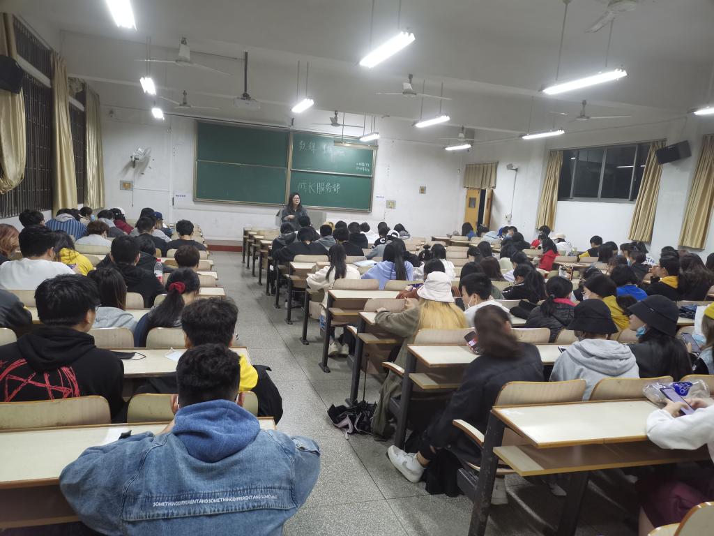 谭老师的培训内容围绕:心理委员的职责、大学生人际交往、大学生情绪管理、压力调节与管理四个主题开展。她针对毕业班心理委员,围绕着大学生情绪管理展开,强调了积极情绪对学生身心健康的重要性及其调节情绪的方法。毕业生即将毕业,面临就业、情感、学业等压力比较大,因此,心理委员培训主要以管理压力,积极面对为主题进行的培训。