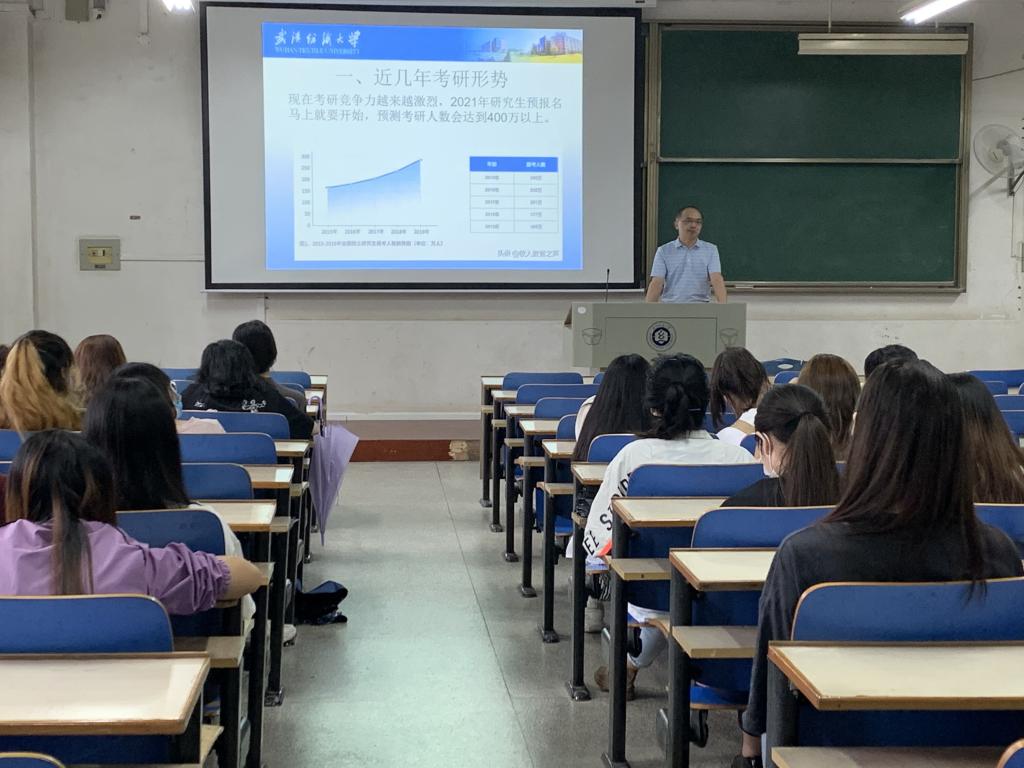 9月10日下午,伟德国际1946bv官网在南湖校区NH05-108召开2021届毕业生就业暨考研动员大会,学院院长沈祥胜、副院长荣建华、院党委副书记马晓锋、毕业班辅导员及全体毕业生参加了此次会议。