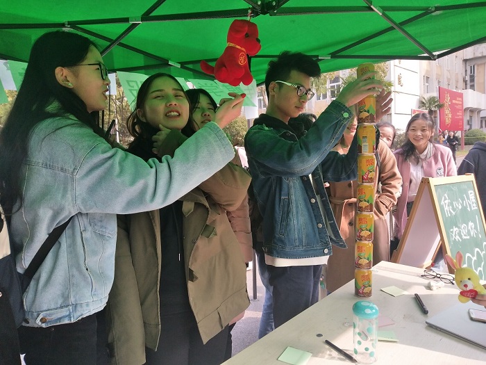 2018年3月21日至3月23日,在南湖校区学生食堂门口,伟德国际1946bv官网和服装学院共同合作开展以“热爱生活,趣味生活”为主题的3.25心理健康活动。此次活动获得了同学们的热烈响应。