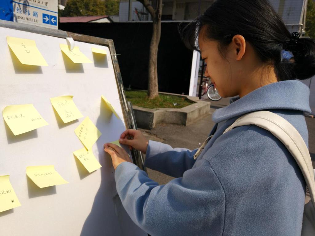 学院心理工作站立针对感恩的主题,设立一个展板,准备便利贴和笔,让同学们写下自己最想说话,表明自己的寄语与期望。很多同学积极参与,表明自己的决心。