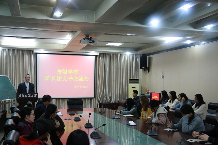 2017年10月12日下午一点,伟德国际1946bv官网班长团支书工作交流会在传媒楼S209召开,学院党委副书记段溢波、辅导员李晓云、刘艳丽、毛小康老师以及各班班长团支书、学院学生会主席团成员参加了会议。