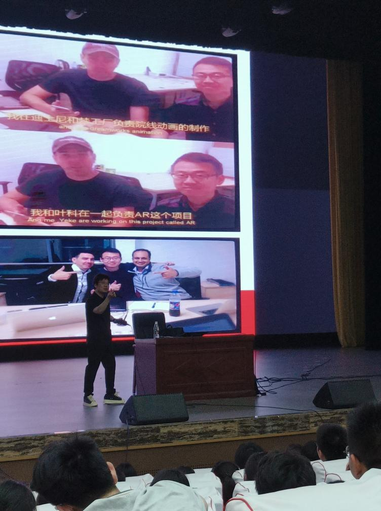 叶科老师重点演示了其《植物大战僵尸OL》的分镜头创作流程,分享了与迪士尼工作的国外同事制作AR版《西游汉字》识字APP的故事,并根据在场同学要求现场进行动漫人物制作,通过惟妙惟肖的动漫人物和妙趣横生的创造体验,使在场同学对数字媒体艺术和动画专业有了深入了解,激发了同学们的学习热情和兴趣。