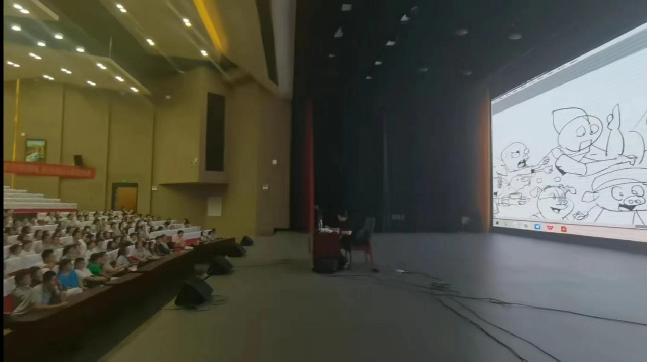讲座现场,叶科老师结合自身动漫行业经验以《看见未来的你——动漫二十年(2003——2023)》为题,进行主题分享。通过演示创作流程、展示创作作品、分享创作体验和现场互动创作等多种形式,向在场同学展示了精彩纷呈的动漫王国,获得在场同学的阵阵掌声和一致好评。