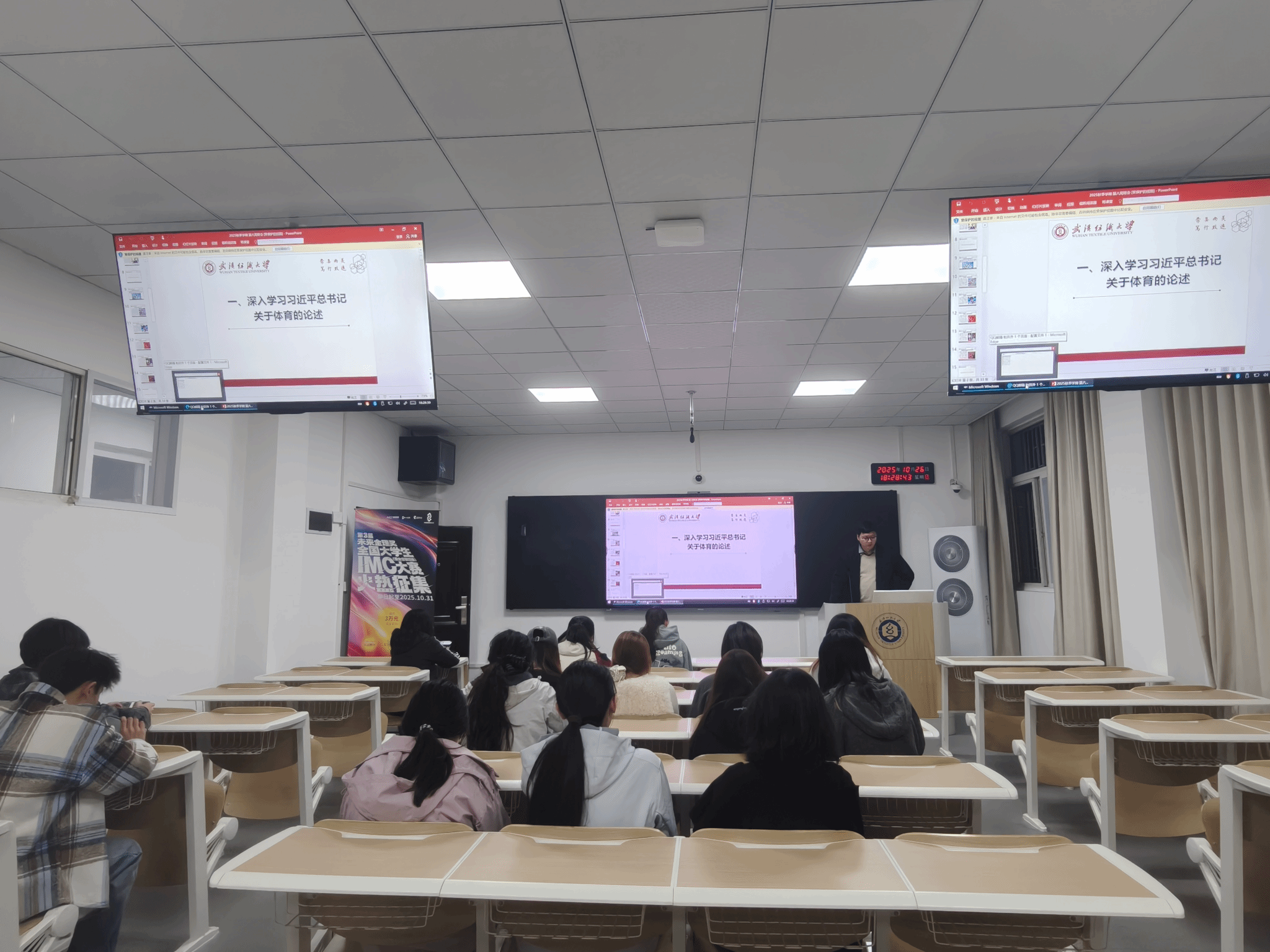 文明其精神,野蛮其体魄。班会上师生共同学习习近平总书记关于体育的重要论述,深刻领会“体育强则中国强,国运兴则体育兴”的战略内涵,明确体育在民族复兴中的重要作用。班会还回顾了学校运动会、太极拳比赛等体育活动成果,这些活动不仅强健学子体魄,更诠释了“自强不息,经天纬地”的纺大精神。最后,各班主任普及了科学锻炼知识与安全注意事项,为学子健康运动护航。