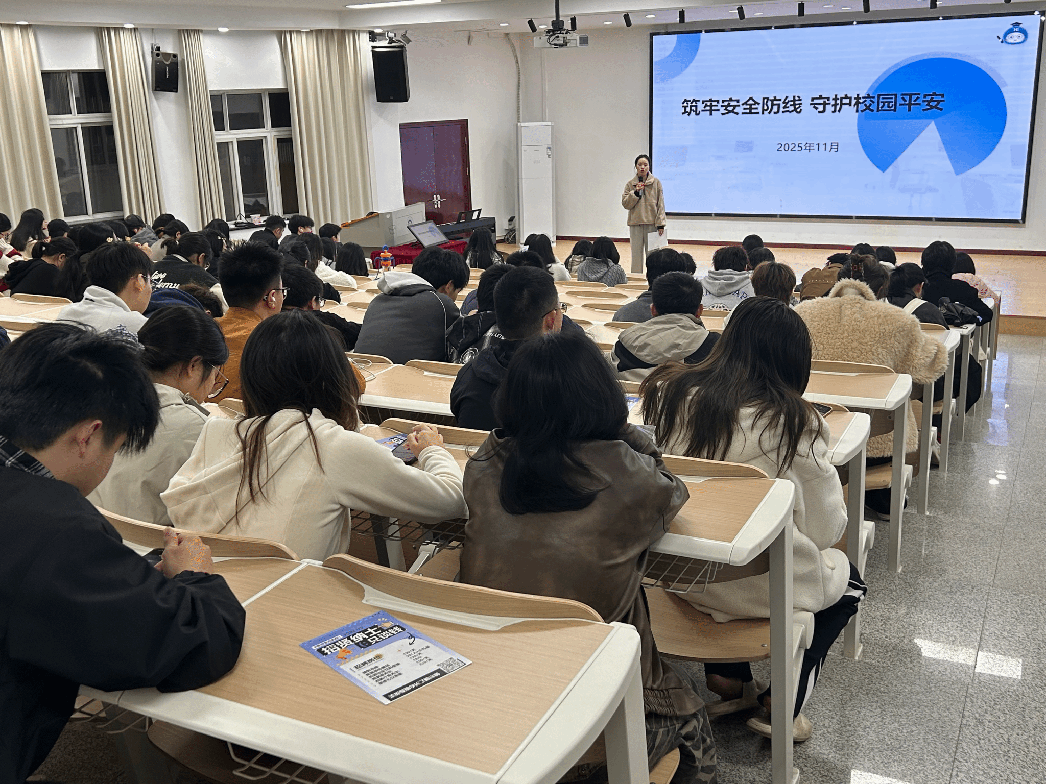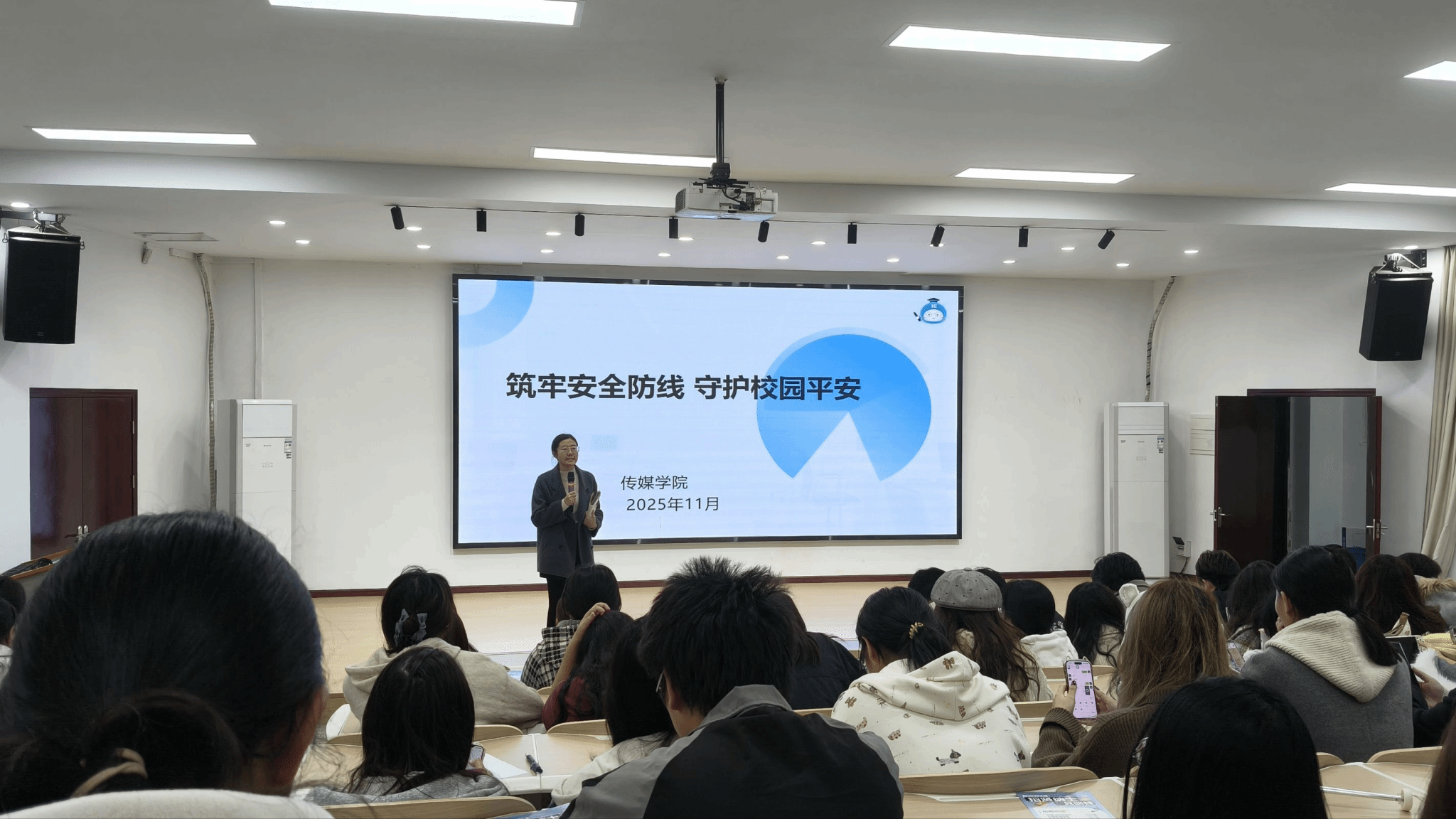 为进一步提高学生消防安全意识、提升安全防范能力,11月9日晚,伟德国际1946bv官网各年级分别在南湖校区青春会客厅开展“筑牢安全防线,守护校园安全”主题班会,各年级辅导员主讲,全体学生参会。