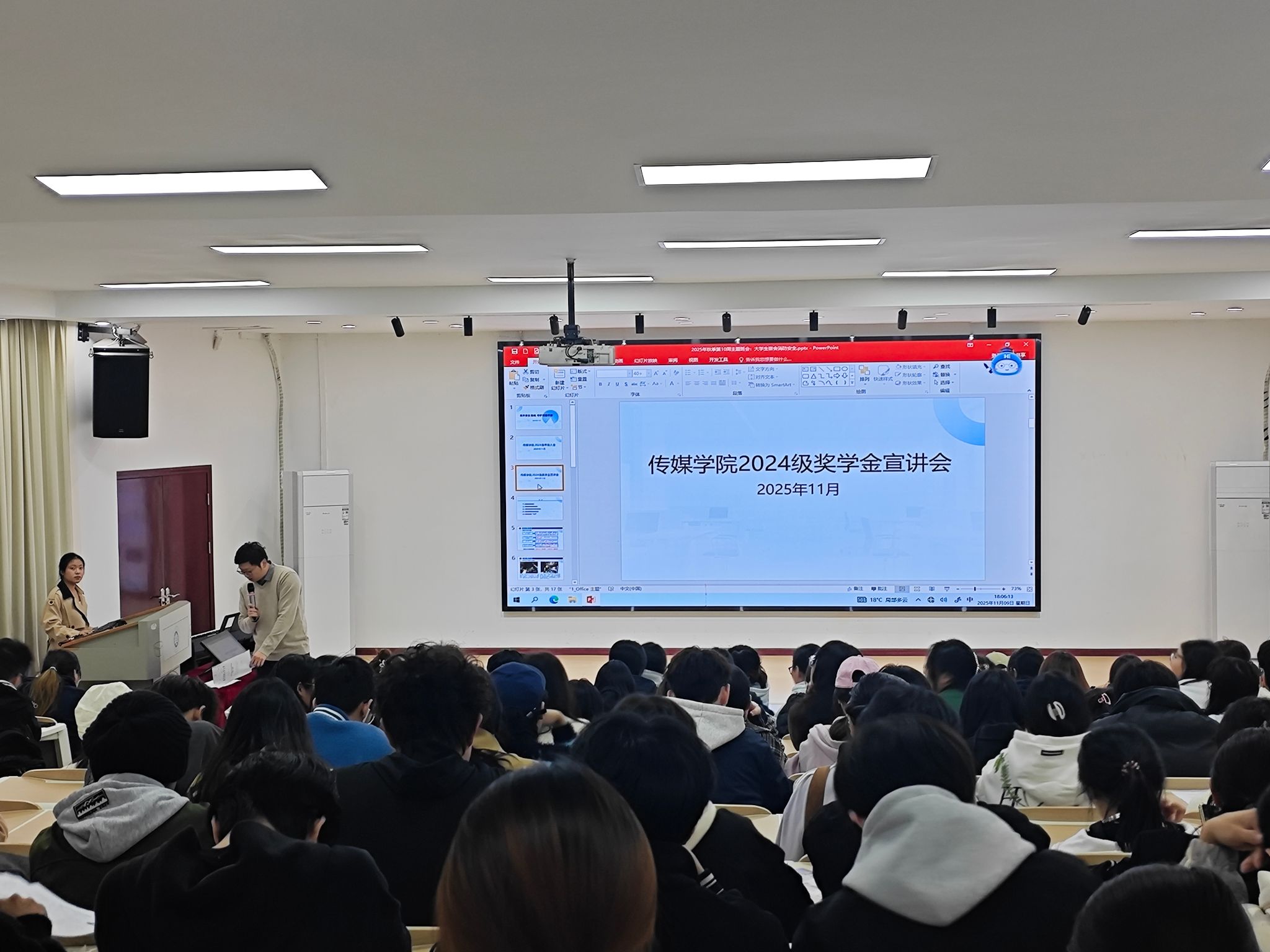 随后,各年级开展本科生学校奖学金、应安奖学金、建全助学金评选政策宣讲,明确相关奖助学金的评选标准与报送流程,强调评选过程公开透明。同时提醒获奖助学生合理规划资金用途,发挥奖助资源最大效能,激励全体同学以先进为榜样,勤勉向上,全面提升综合素质。