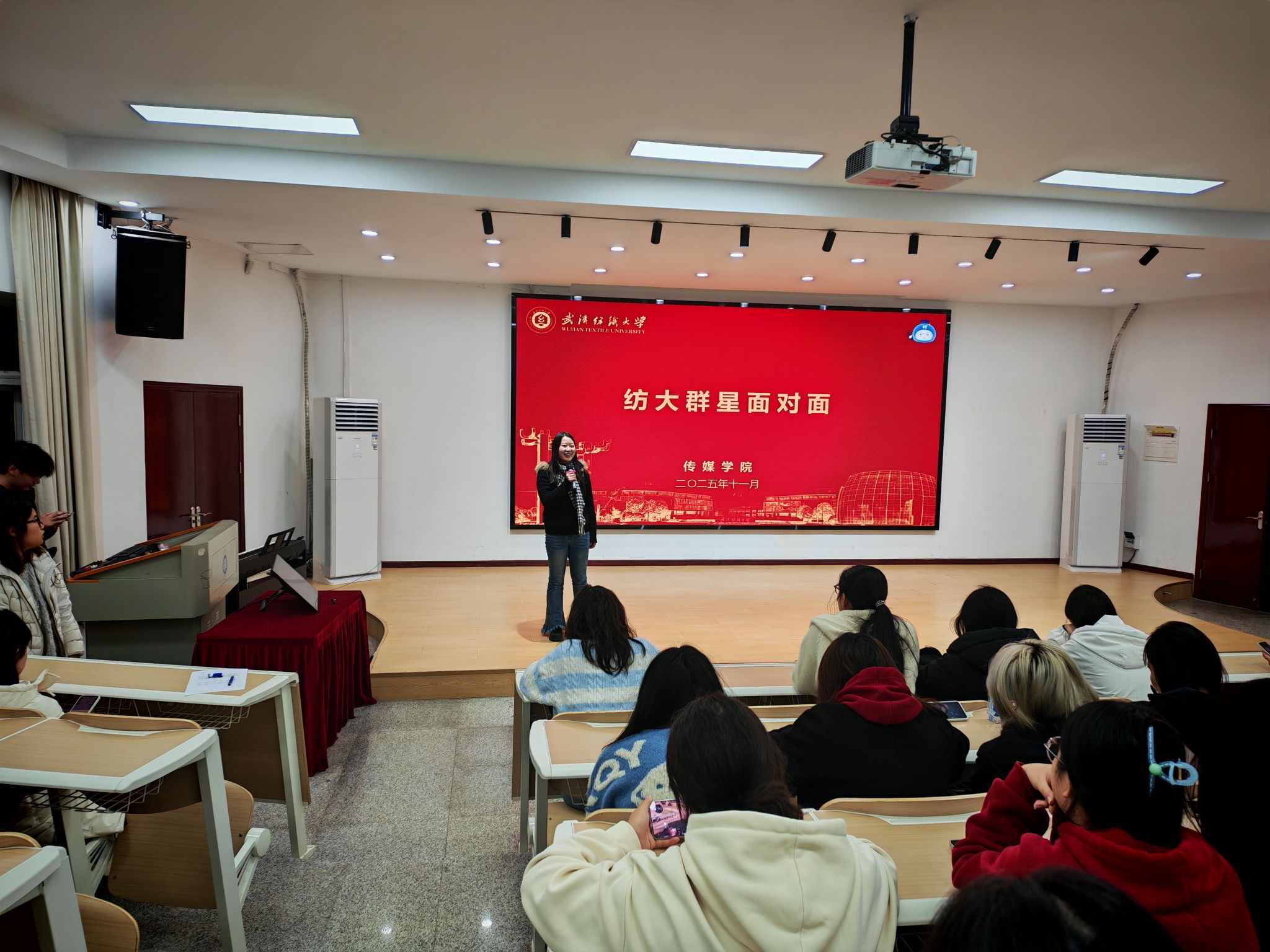 11月23日下午,伟德国际1946bv官网“榜样领航---保研学子面对面”经验分享会在南湖校区“一站式”学生社区服务中心“青春会客厅”温情开讲。保研至中南财经政法大学的广电 12201 班陈茜围绕大学学习规划、自我定位、毕业路径选择等学生关切的核心话题,分享成长体悟与实用经验,2025 级全体学生到场聆听,在与榜样的近距离交流中明晰成长方向。