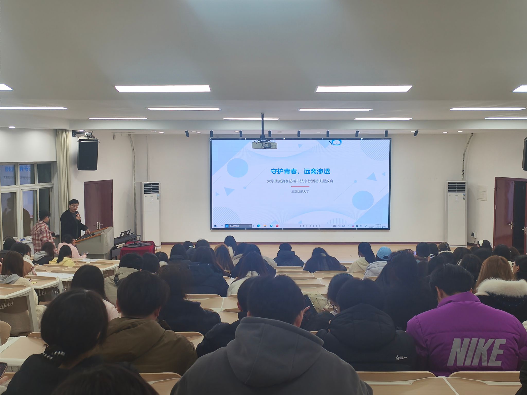 在“守护青春,远离渗透”防范非法宗教专题教育环节,老师们引导学生认清非法宗教本质与危害,自觉恪守国家宗教政策和校规校纪,坚定理想信念、树立正确三观。同时,班会公布校内心理求助、辅导员及学院办公联系方式,为学生提供全方位保障。