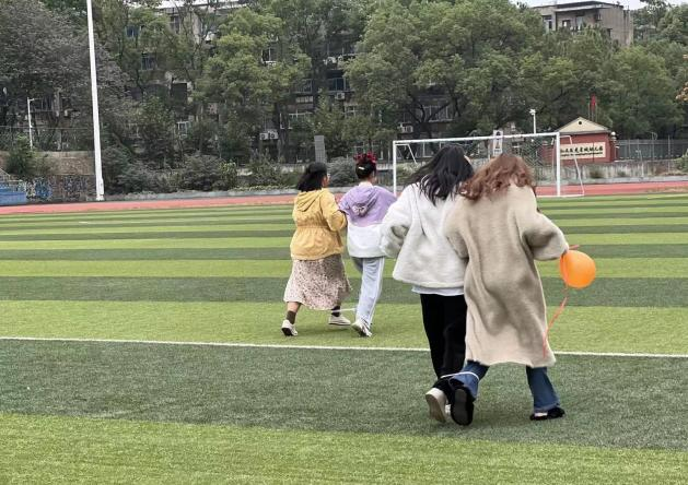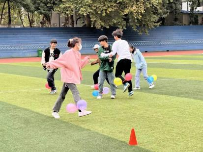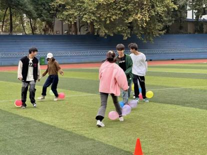 最后一个项目——踩气球。每个寝室派出三个人,一人脚上绑有两个气球,计时结束后,剩余气球最多的寝室获胜。操场上彩色气球色彩缤纷,欢乐笑声回荡其间,比赛的热烈氛围由此达到顶点。游戏结束后,大家都还意犹未尽,沉浸在这由气球、奔跑构成的简单欢乐里。在同学们的呼吁下,又开启了一轮不记分的大混战,每个人都参与其中共同享受这纯粹的欢乐。此活动409寝室获得了第一名。