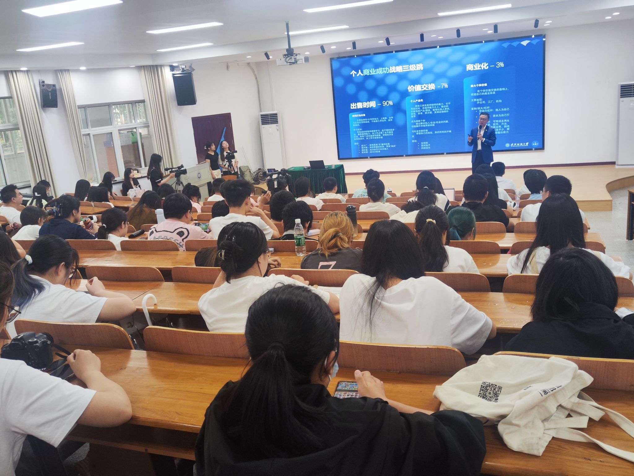 汪睿结合自身丰富的实践经历,从思维转变、立足和立人模型、个人战略、通用能力四个方面分析了立人三要素以及个人职业发展的三个层次,为学生们答疑惑、指方向,让与会同学对于个人生涯规划的制定和自身能力的培养有了深刻且全面的认识。