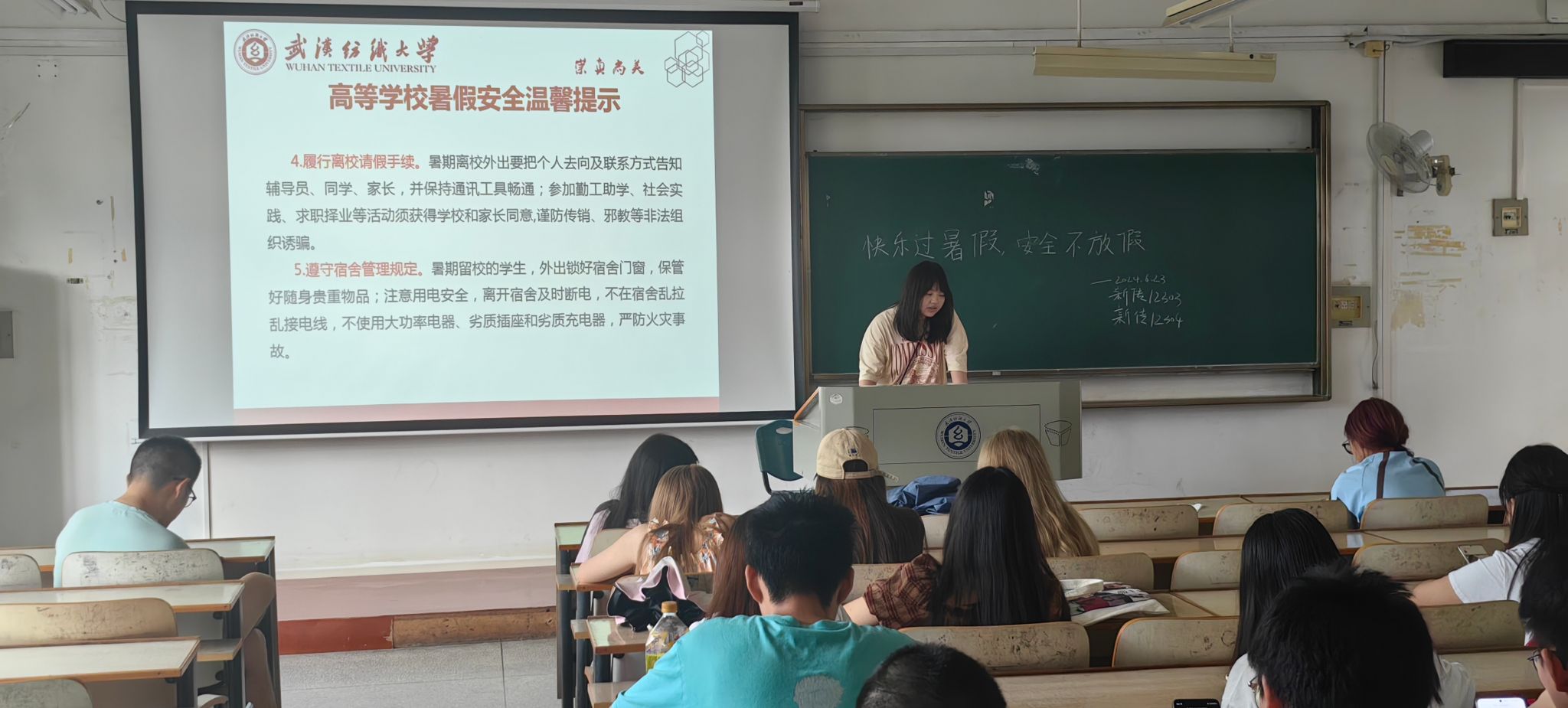 暑期将至,为确保学生度过一个安全、愉快的假期,6月23日,伟德国际1946bv官网开展“快乐过暑假,安全不放假” 主题班会活动,辅导员、班主任及全体学生参加班会。