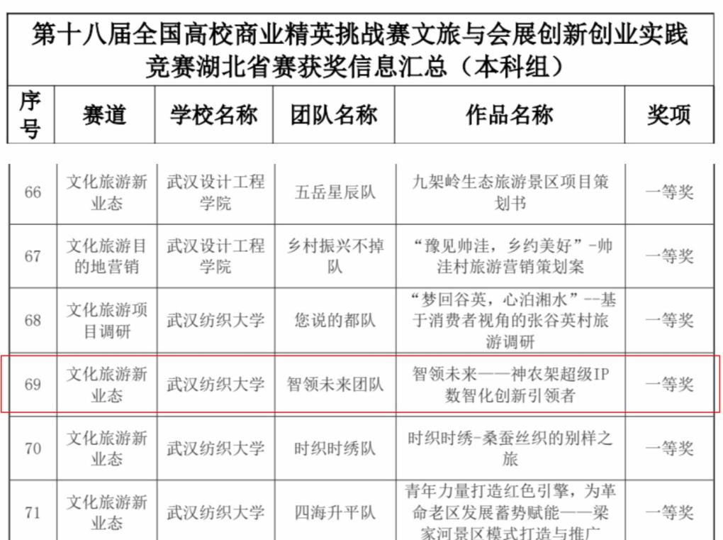928日,全国高校商业精英挑战赛文旅与会展创新创业实践竞赛湖北省赛在湖北经济学院圆满收官。刘亚和金宜鸿老师指导李云霞、王成龙、宋琬琦三位同学共同完成的《智领未来——神农架超级IP数智化创新引领者》项目表现出色,荣获一等奖。