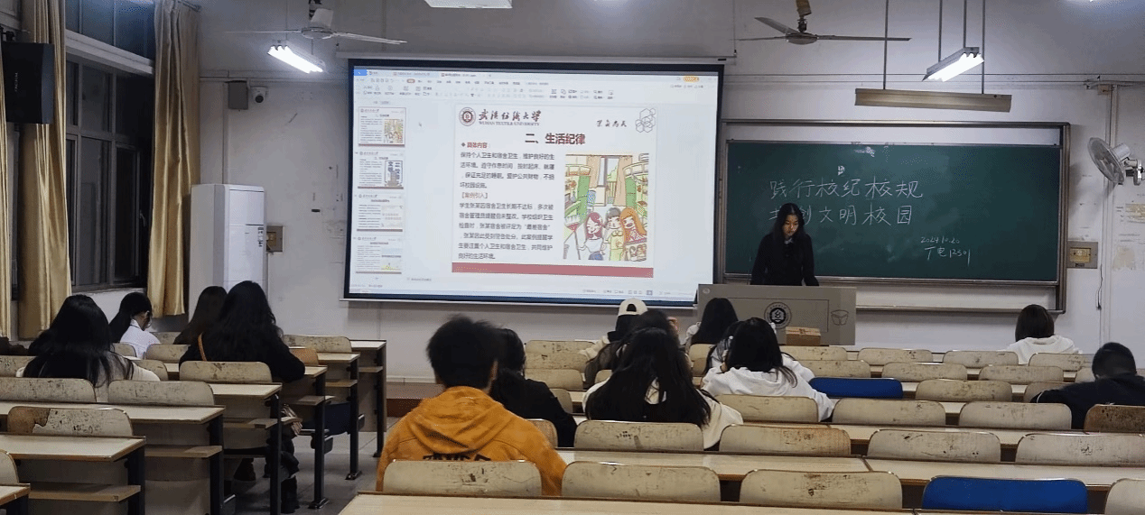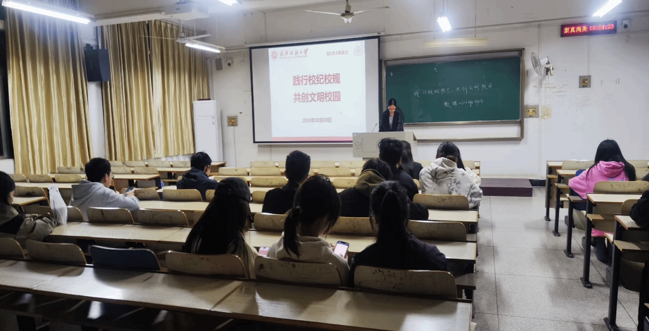 班会伊始,各年级辅导员、班主任以《高校学生行为准则》开篇,带领同学们深入学习学籍学业管理、日常管理规定、奖助管理规定等内容,呼吁同学们遵守校纪校规、维护校园和谐,共同构建美好校园的理论实践框架。不以规矩,不成方圆。老师们从学习、生活、行为这三方面讲解了纪律规范的内容,详细讲述了践行校纪校规的重要性与实践方法,希望学生们在今后的学习和生活中继续发扬自律精神,共同营造一个文明、和谐、积极向上的校园文化氛围。