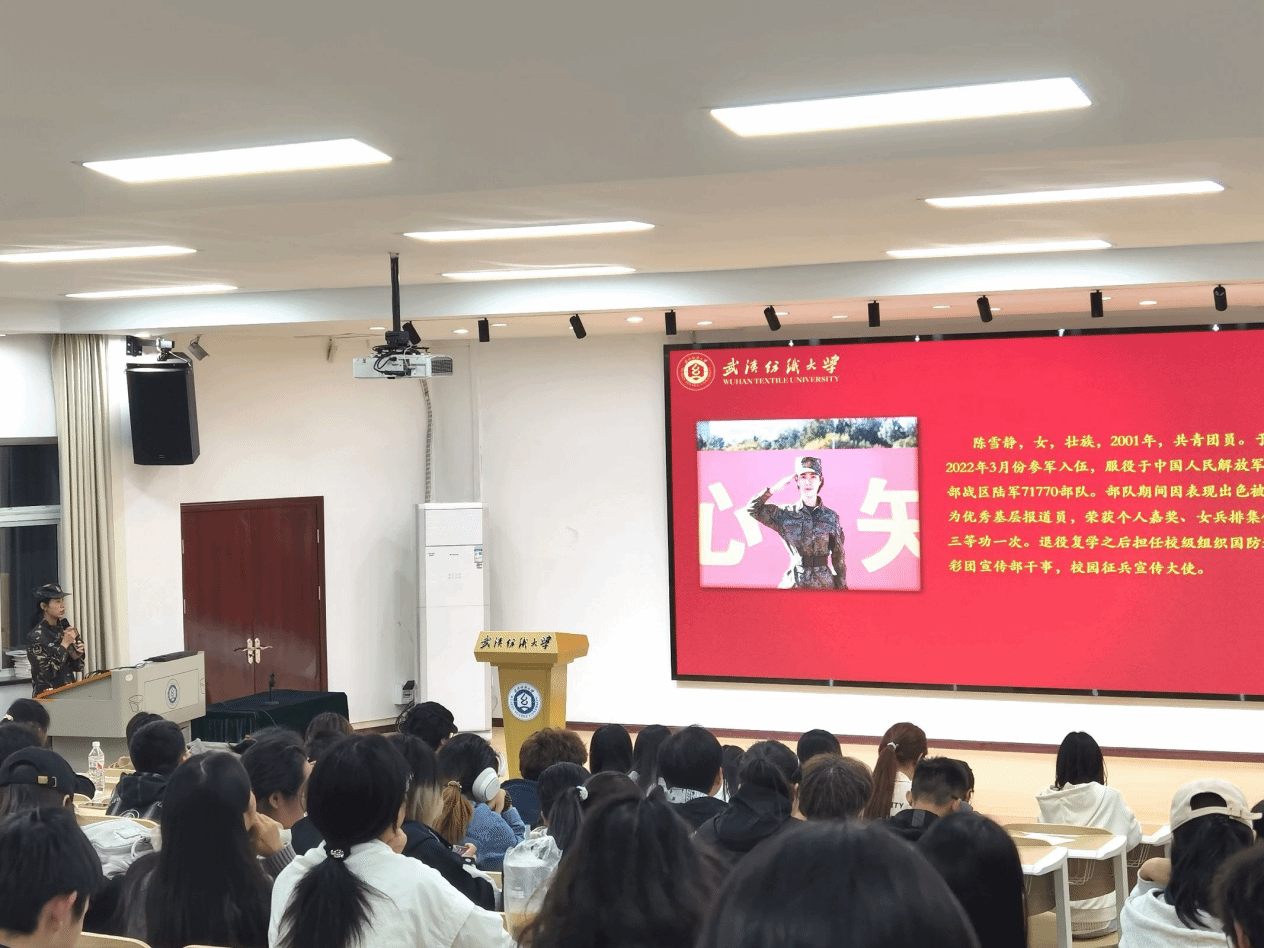 学校征兵宣讲团成员、伟德国际1946bv官网广电12301班陈雪静同学结合自身军旅生活,讲述入伍后自己的成长和收获。她表示,军旅生涯让她深刻地领悟到团结、责任和担当的重要性,在成长的同时收获了无畏的勇气,希望有更多的同学抓住机遇,积极响应号召,投身军营报效祖国,奉献自己的青春和力量。