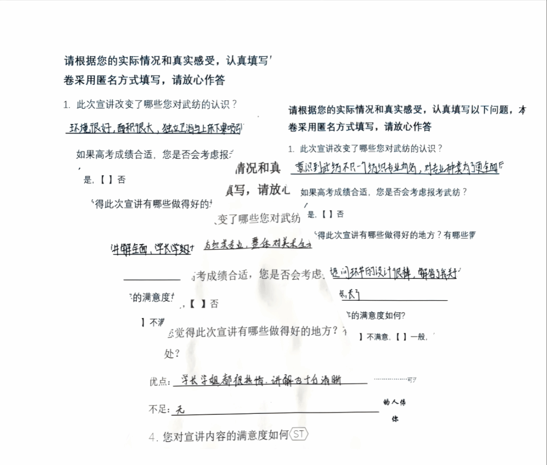 活动开展前,学院通过举办经验分享会对立项团队进行专门指导和“一对一”培训答疑,并立足不同生源校特点制定特色活动方案。例如:姚星宇团队探索出“问卷摸底”宣传模式,在襄阳市第二十四中学通过校园表白墙收集问卷200余份,并以问卷数据为基础优化宣讲内容,开展针对性线下宣讲,通过问卷摸底这一形式,进一步提升了目标群体的报考意向。