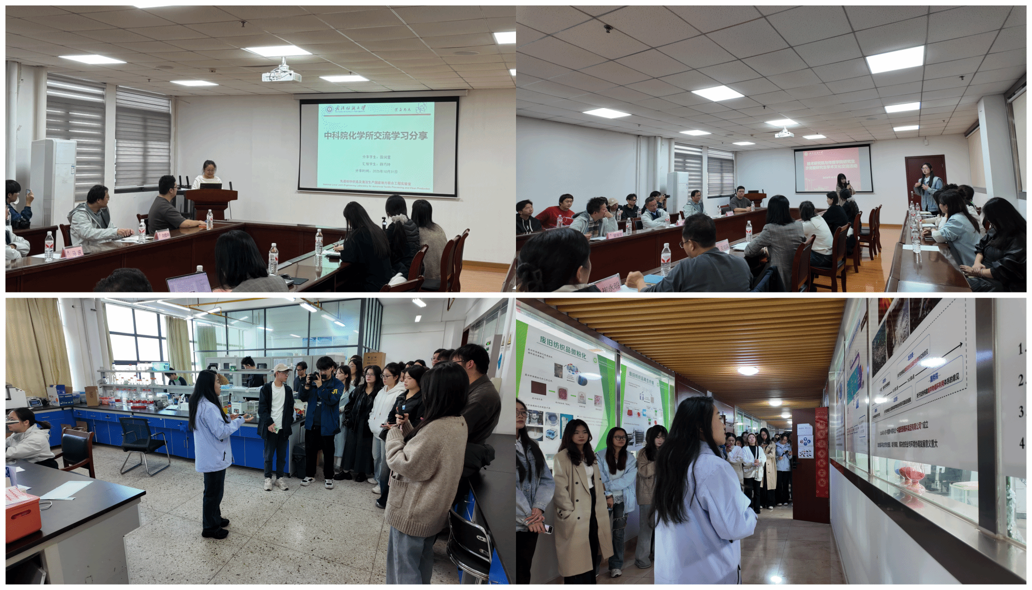 会后,伟德国际1946bv官网师生深入实验室核心科研区域,近距离观摩先进科研设备和科学实验操作,深入了解废弃纺织物回收再利用等关键技术,直观感受学校在纺织领域的科研创新实力与发展脉络。纺织科技馆和全国重点实验室的参观学习让同学们切身感受到了学校服务国家科技强国战略和美丽中国建设的实践力量。