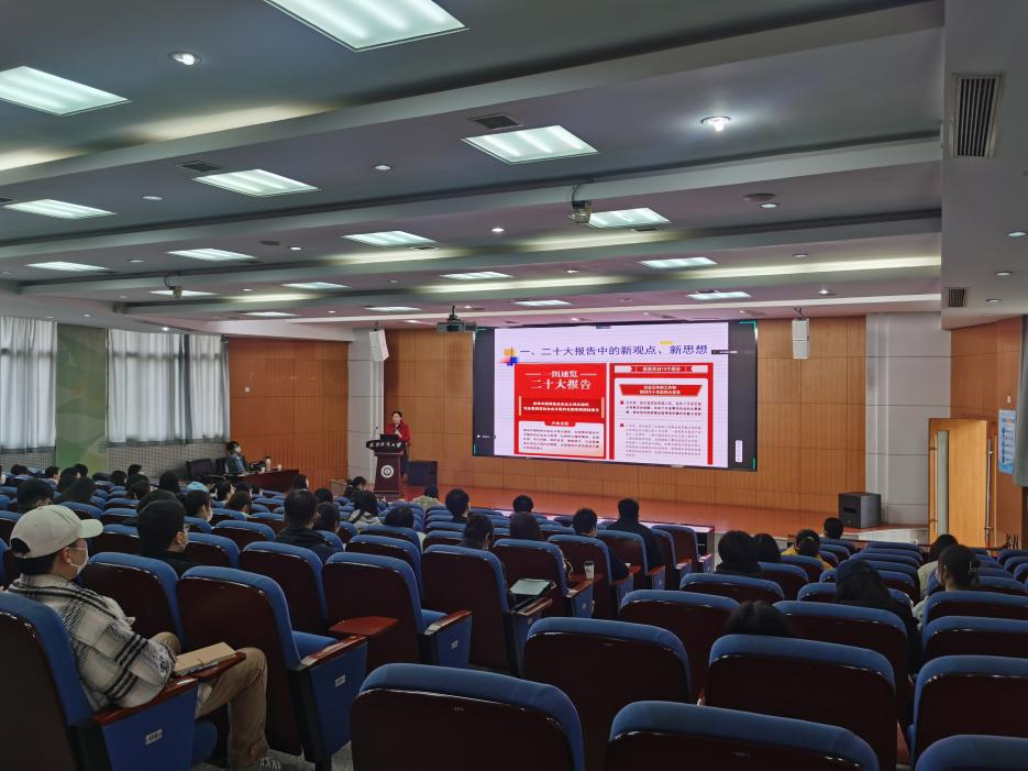曾令玉以《增强党性意识 勇担时代重任 贡献青春力量》为题,从二十大报告中的新观点、新论断、新思想;党的政治纪律和政治规矩的基本内涵;严明政治纪律和政治规矩的重要性;大学生党员如何严守政治纪律,增强党性意识;勇担时代重任,谱写青春乐章等五个方面进行宣讲。并就中国式现代化,中国共产党的中心任务,新时代新征程中国共产党的历史使命等进行重点讲解。