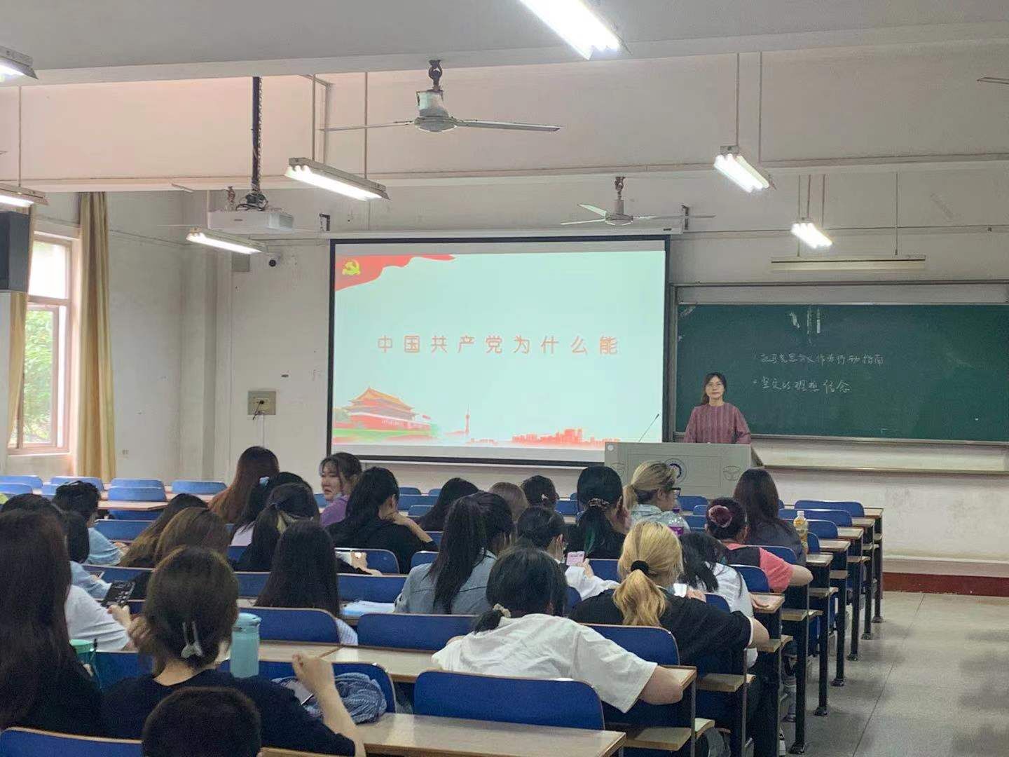 党课上,黄鹤老师带领全体学生党员回顾了中国共产党整整一个世纪不平凡的奋斗历程,从 50 多名党员到近 9200 万名党员,从一叶扁舟到巍巍巨轮,中国共产党从小到大、由弱到强。