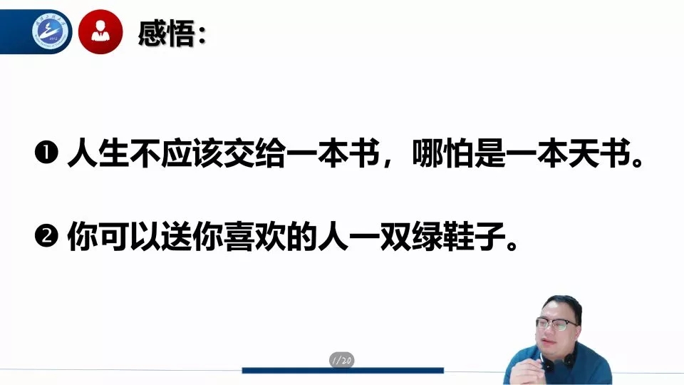 雷老师由一个“绿鞋子的故事”导入,告诉同学们“人生不应该交给一本书,不应该被一本书所决定,不要交给命运,而是要交给自己”的道理。随后雷老师从自我探索、技能和能力、意义和价值三个部分为同学们展开了详细介绍。
