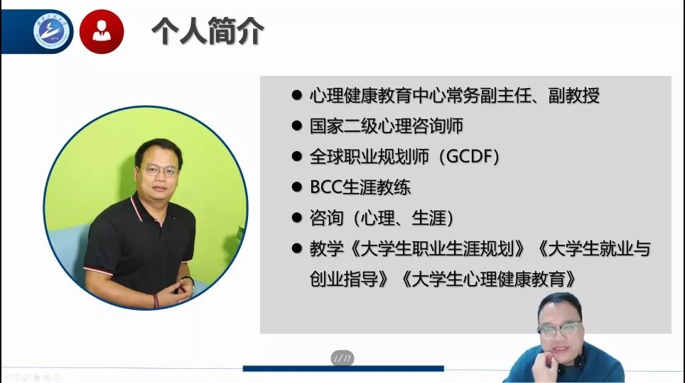 为使同学们找准目标方向,明确职业规划,伟德国际1946bv官网特邀武汉工程大学心理健康教育中心常务副主任雷辉老师于12月2日晚7:00开展了“探索自我,规划人生”为主题的线上讲座。