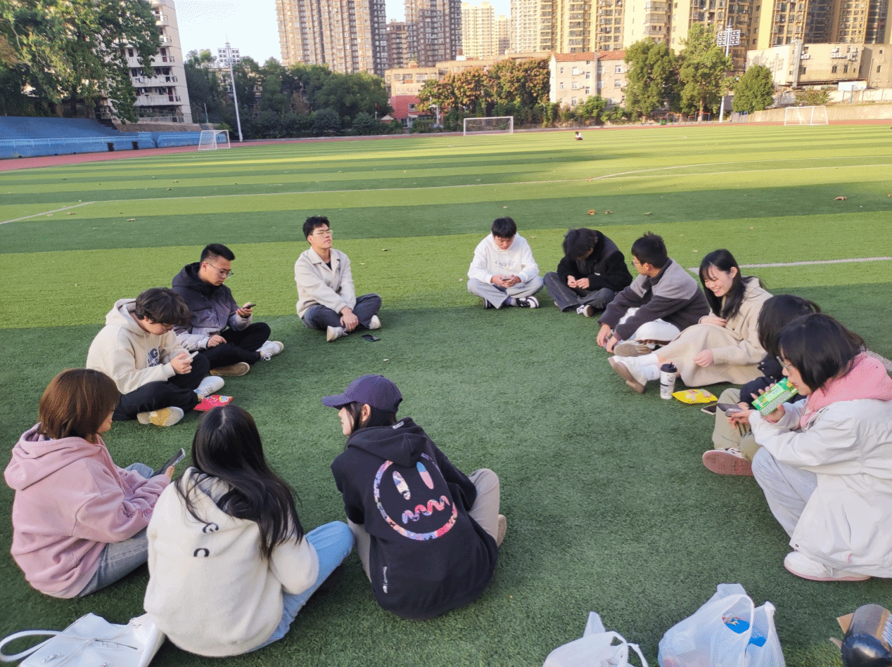 (同学们围坐在一起共同享受闲暇的时光)