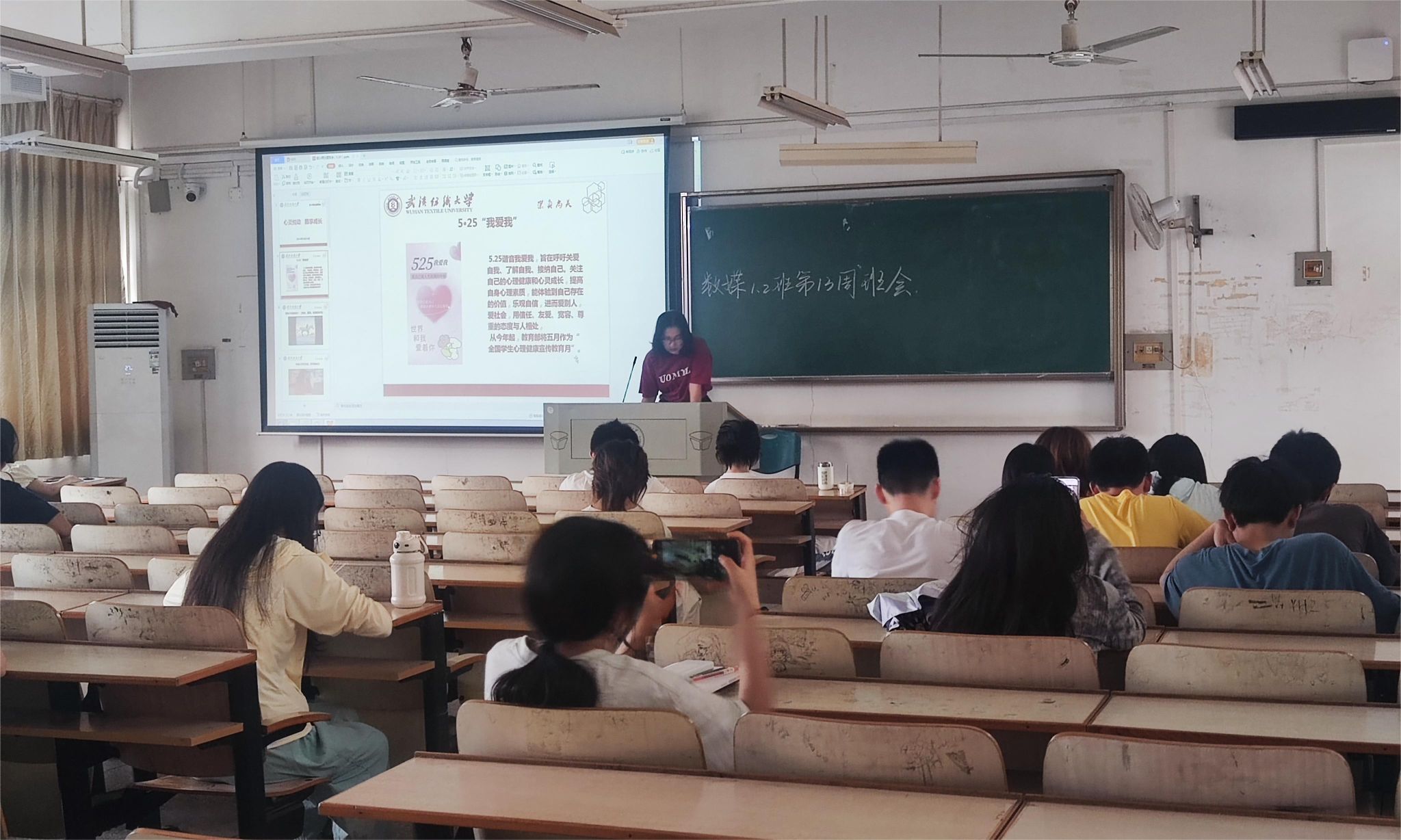 班会伊始,各年级辅导员、班主任以“5·25”全国大学生心理健康日切入点,引导学生关注自己的心理健康和心灵成长,提高自身心理素质,进而爱别人,爱社会。紧接着,老师与同学们分享了本次5月“我爱我”系列活动信息,动员同学们积极参与,切实培育健康心态,积极提升心理素养。最后,就大学生心理问题解决方法与人生价值取向导航提出切实建议,具体包括自我心理关照、拥抱压力、心理充能等。