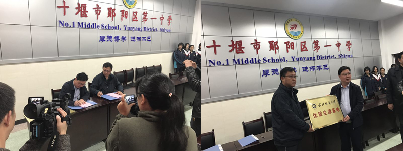 4月11日,bevictor伟德官网入口优质生源基地授牌仪式在十堰市郧阳区一中隆重举行。伟德国际1946bv官网沈祥胜院长与郧阳区一中毛士文校长签订共建优质生源基地协议并共同为优质生源基地揭牌,沈祥胜院长同时代表学院向郧阳区一中师生捐赠了艺术教学示范作品和图书。十堰市文联副主席柏东明、十堰市美协主席李发山、郧阳区委常委宣传部部长王超、区人大常委会副主任扬干兵、郧阳区政协副主席刘学浩及郧阳区一中领导班子成员、专业负责人、骨干教师和学生代表等参加了仪式。
