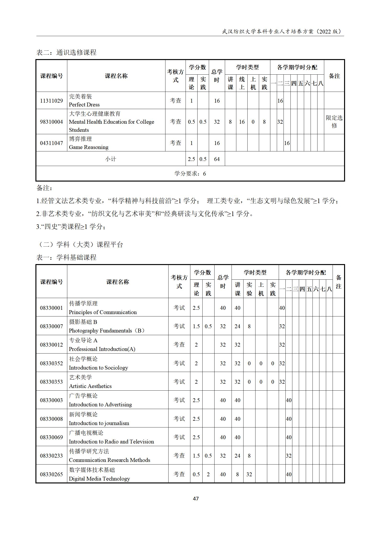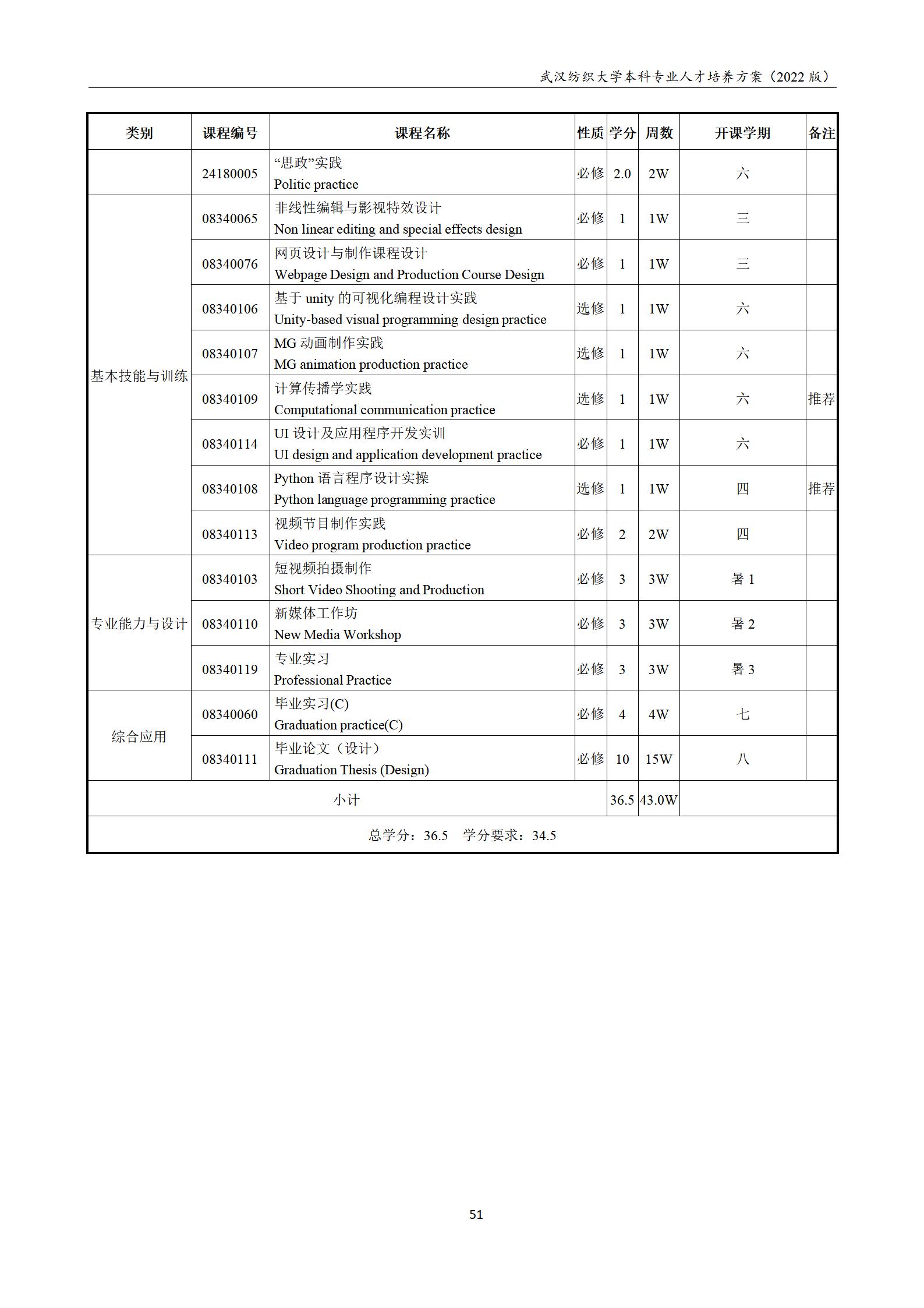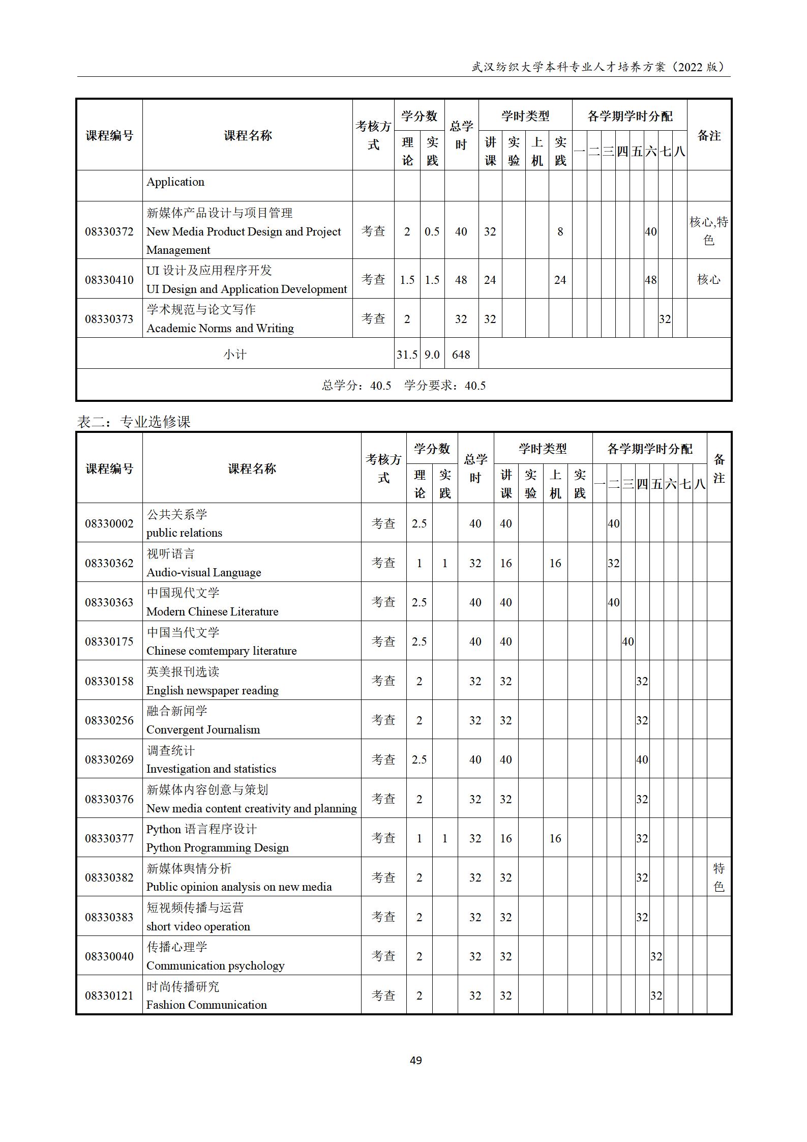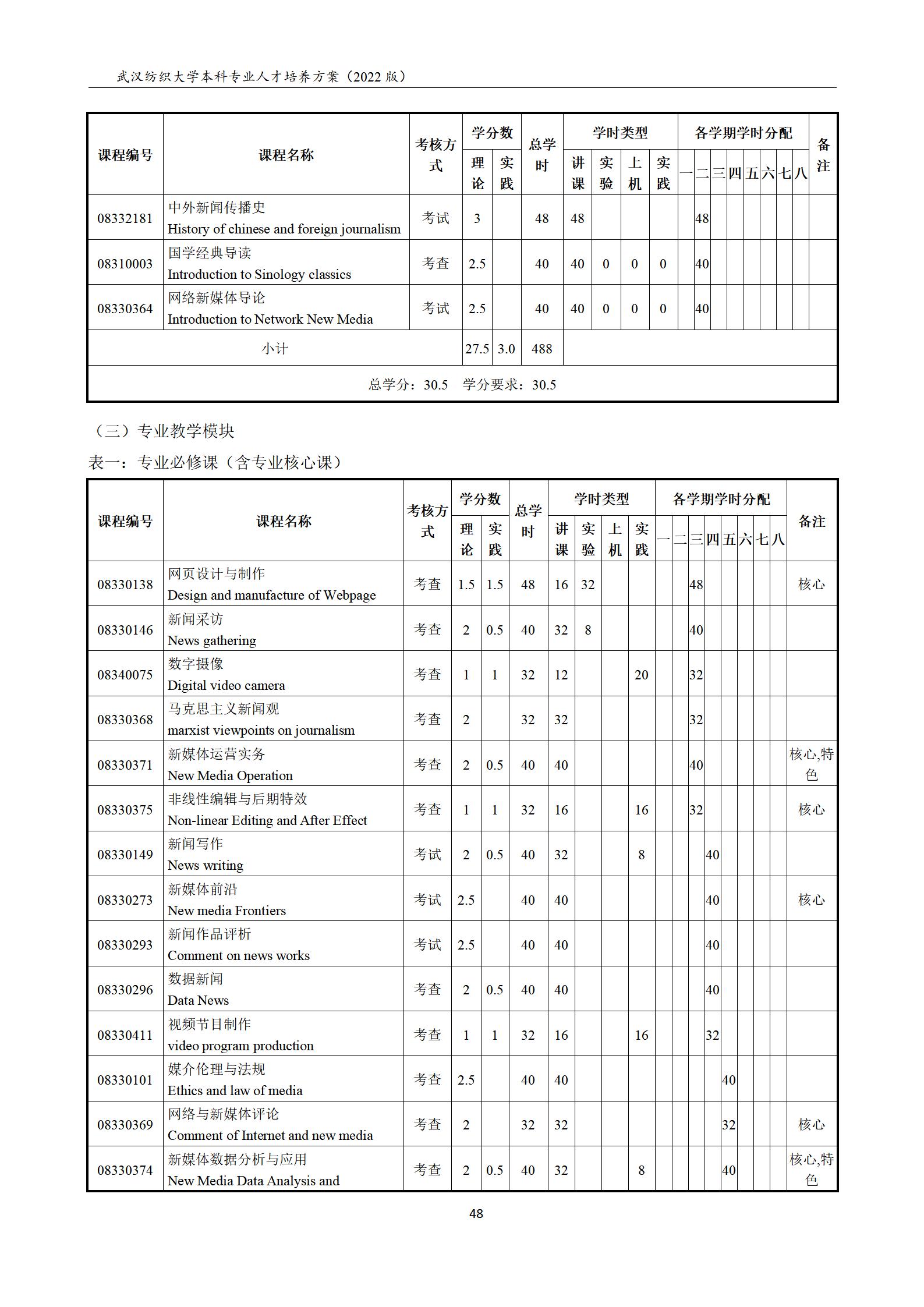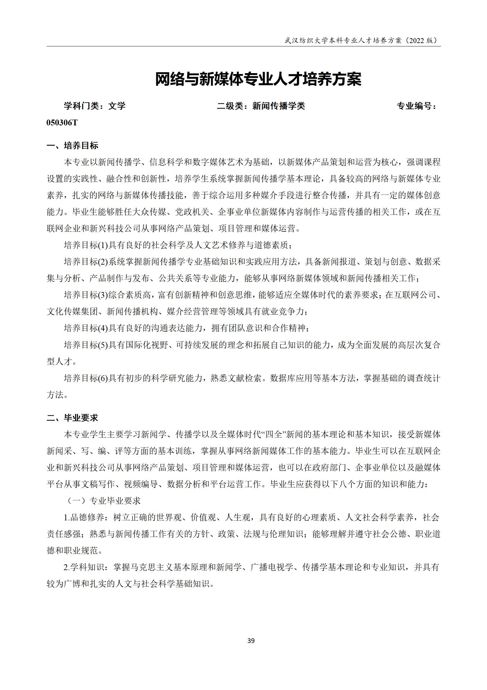 2022网络与新媒体专业本科培养方案