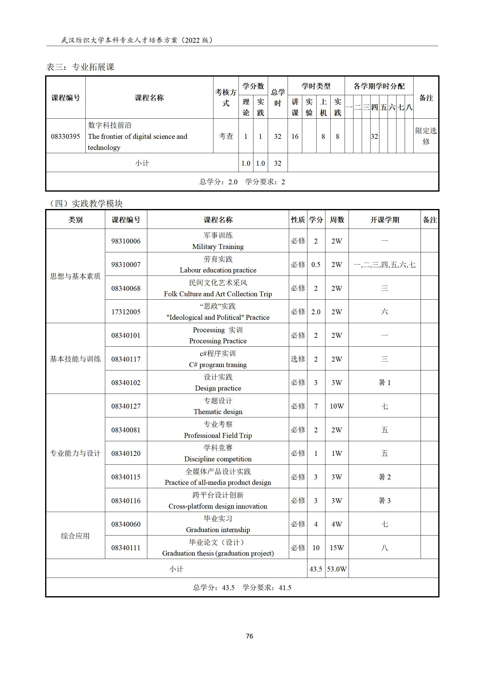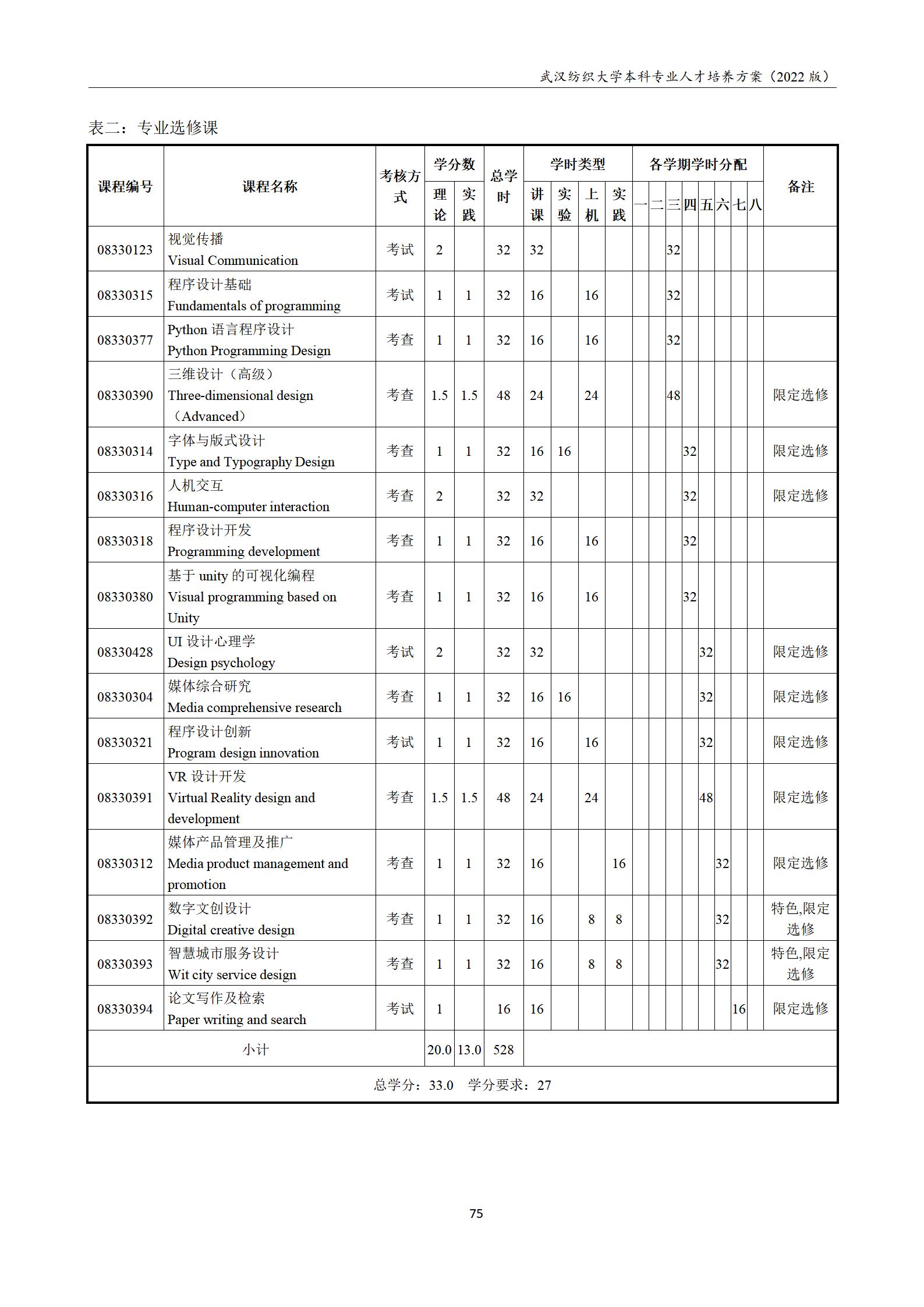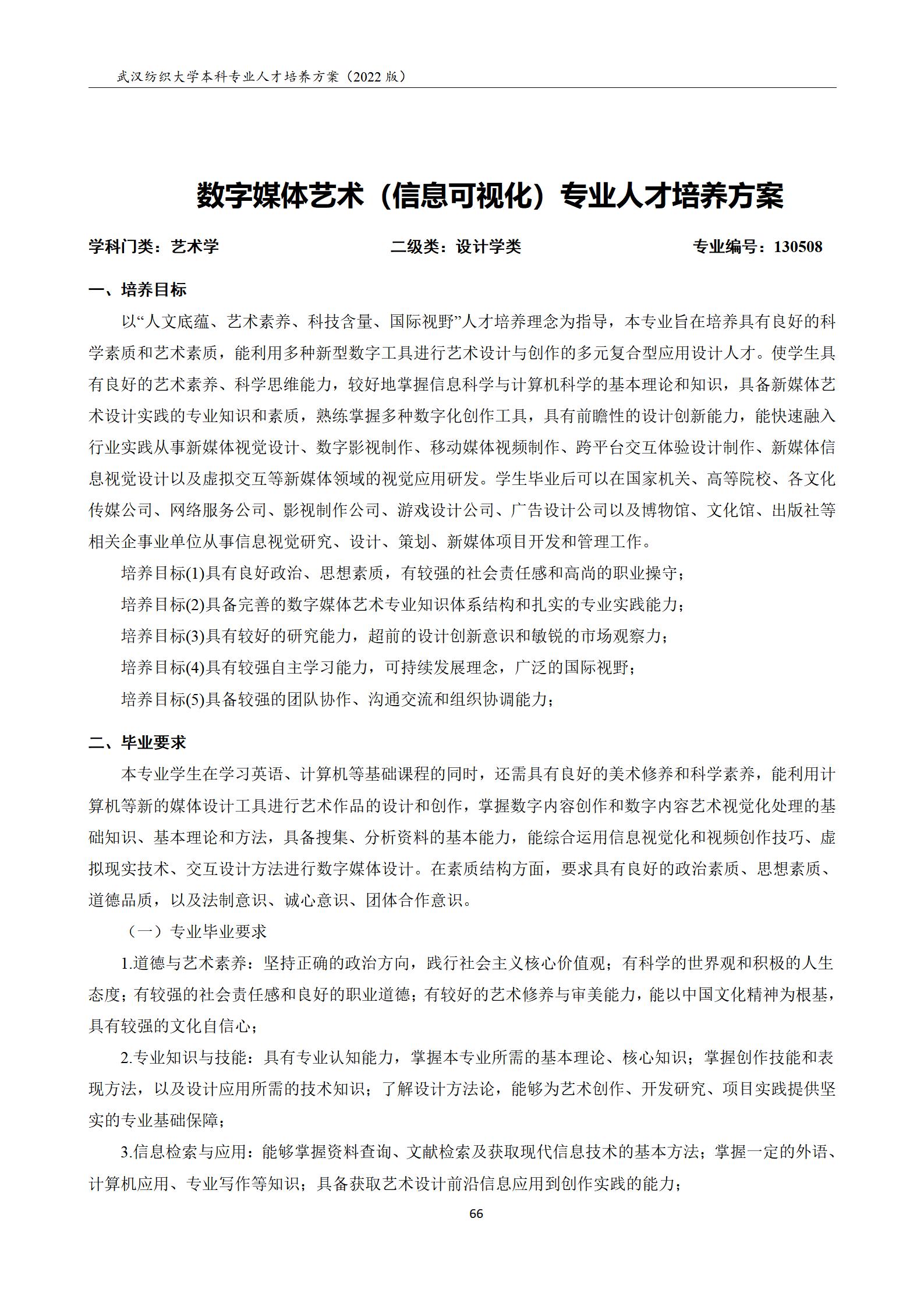 2022数字媒体艺术(信息可视化)专业本科培养方案