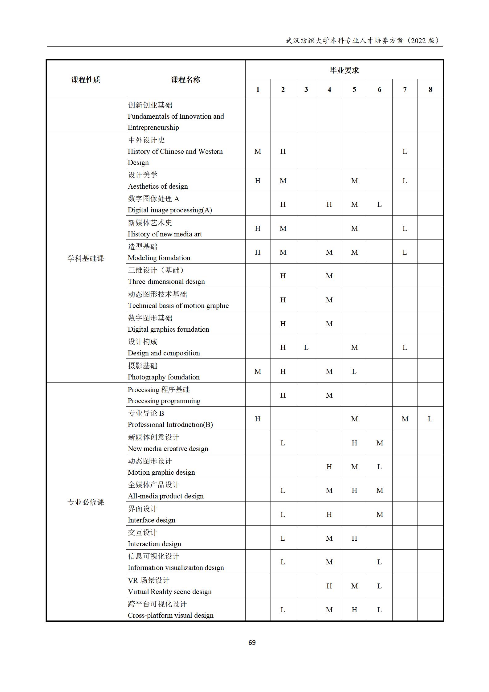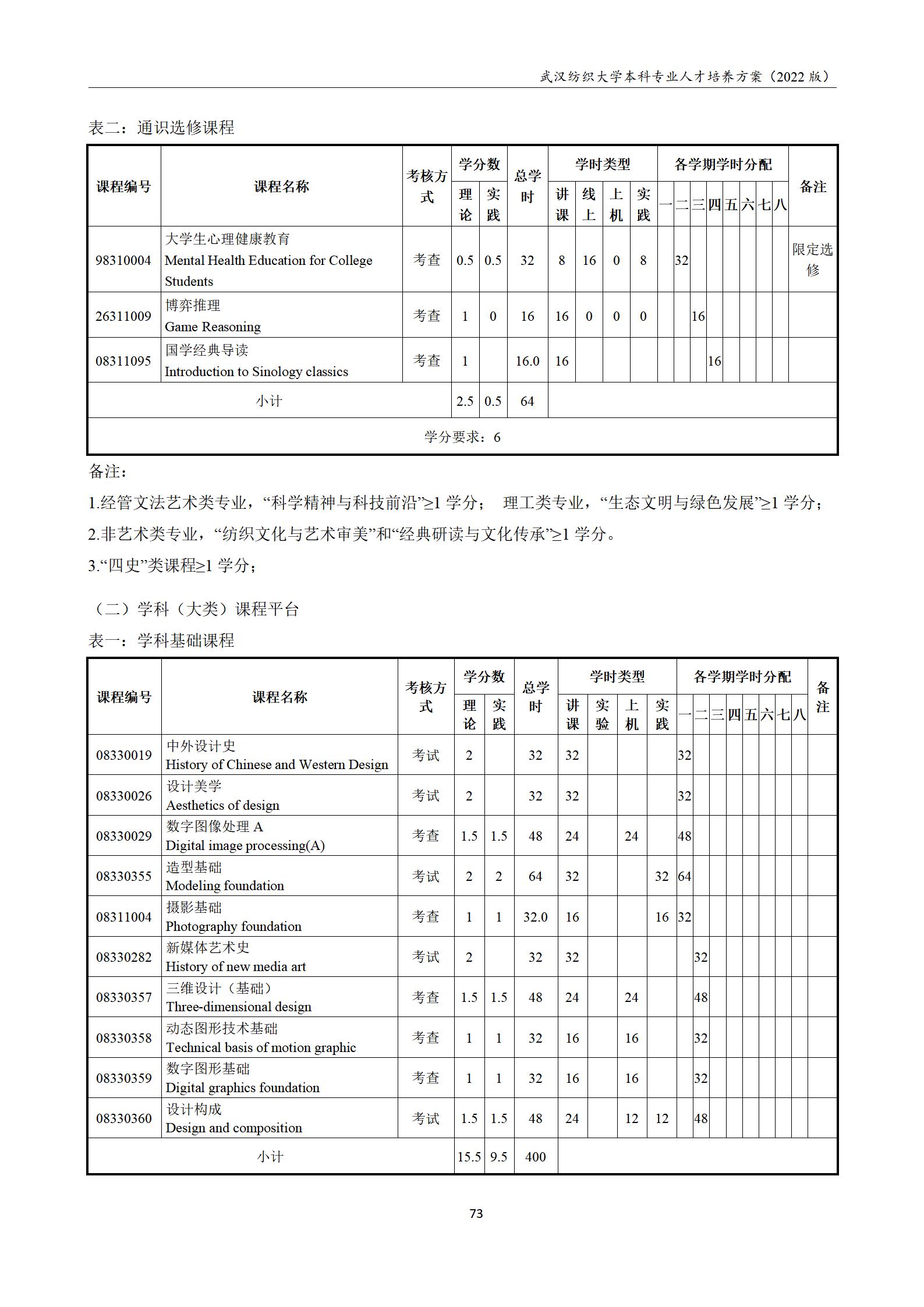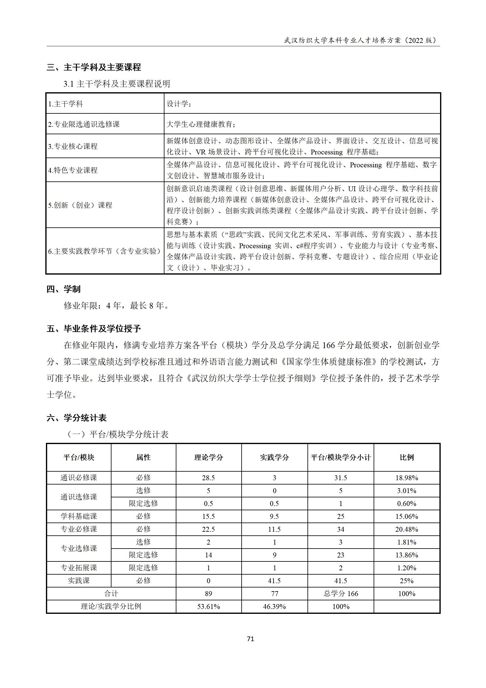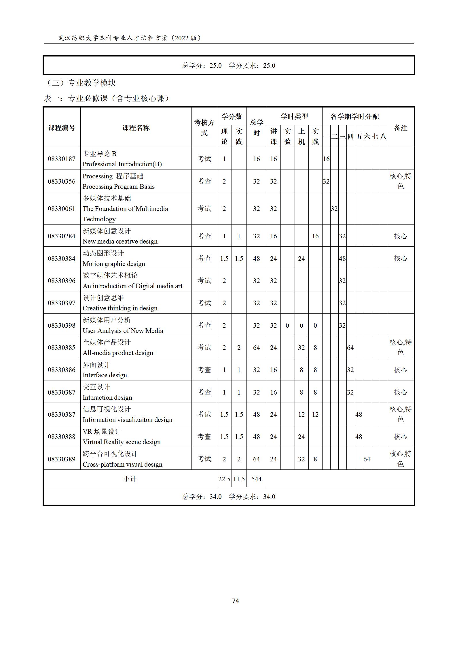 2022数字媒体艺术(信息可视化)专业本科培养方案