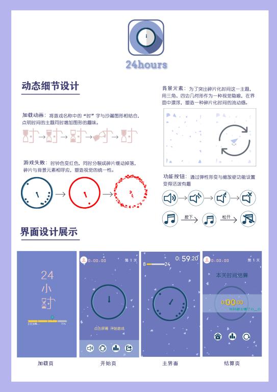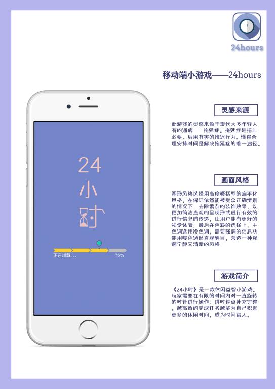 此次游戏的灵感来源于现代大多年轻人有的通病——拖延症。拖延症是指非必要、后果有害的推迟行为。如表现在总在考试最后几天才复习;不到最后期限不交作业;没计划又不懂时间管理等。懂得合理安排时间是解决拖延症的唯一途径。一天24小时对每个人来说都是平等的,这是物理环境的时间概念。而每个人对时间的利用的不同,一天的有效时间也是不同的。因此有人把时间比作智慧,合理的利用是需要经过努力、思索和创造的,在此背景下,萌生了将时间观念与小游戏相结合的想法,希望玩家在玩的过程中,可以提高对于学习、工作、生活各个方面的积极性和主动性,使人们更有效的完成工作,具有很好的教育价值。