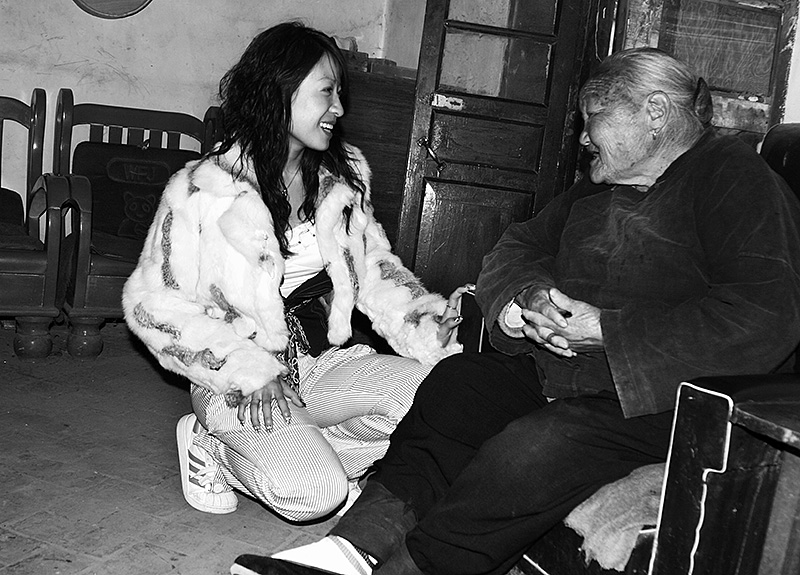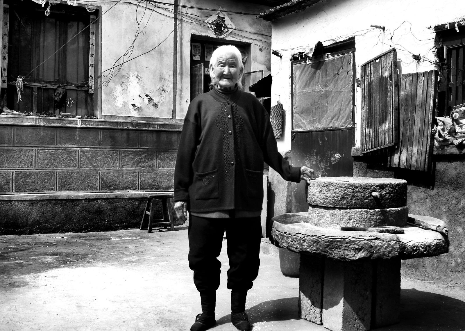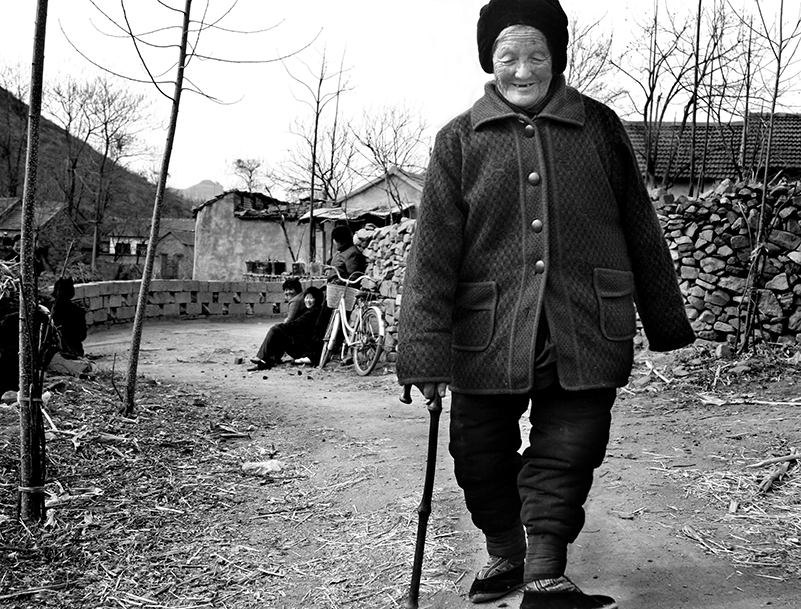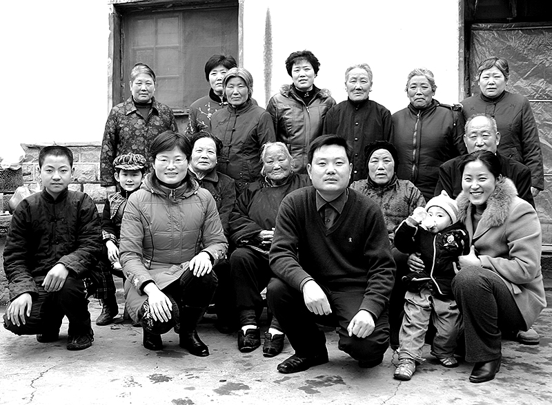 赵严玲, 90岁,7岁时裹脚,15岁出嫁。生有两男一女。25年前丈夫去世,现在在儿子家住和儿子、儿媳共同生活在一个院子里,过的很幸福自在。身体也很健康生活也清闲。她还是很有福气的,不仅长寿而且儿孙满堂,也是四世同堂的一家之主。