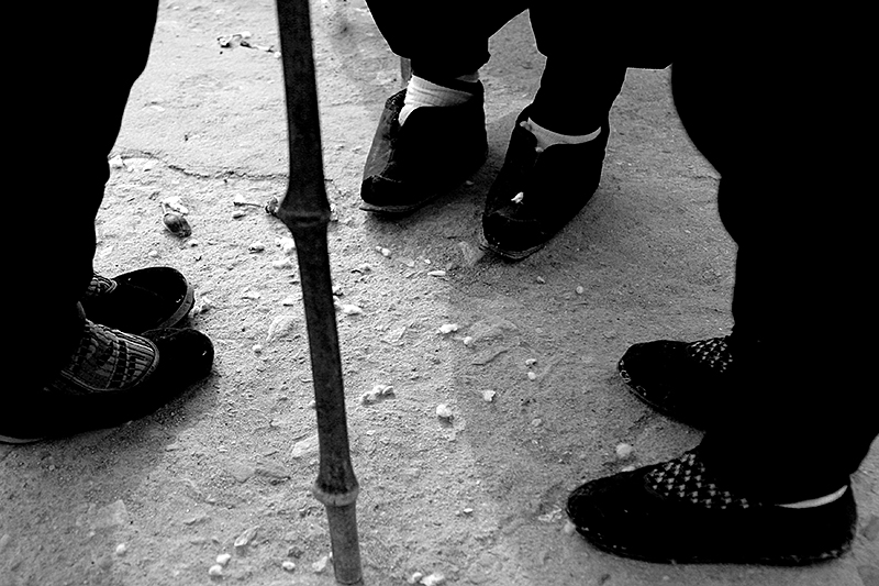 冯晓梅,84岁,8岁时缠足,17岁时出嫁。她的命运很好也很惨,因为她改嫁过一次至今还记得娶亲那天的情形,嫁给比自己大两岁的新郎官是坐花轿来迎娶她的,新郎骑着一匹大马,很是威风。如今谈起她的第一次结婚,冯晓梅满脸挂着笑容。人命由天,她的丈夫在她29岁的时候因病去世。一双小脚注定她得依靠男人,于是她只好再次改嫁,几经磨难活到现在。