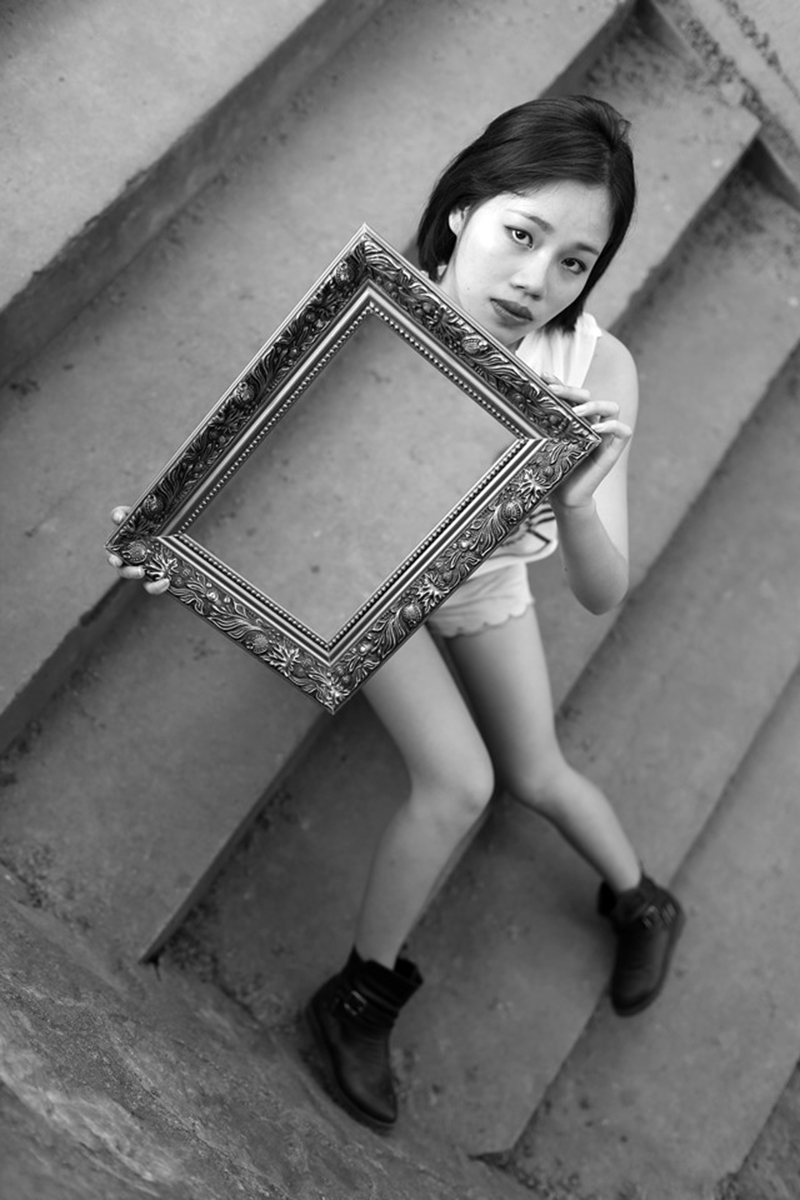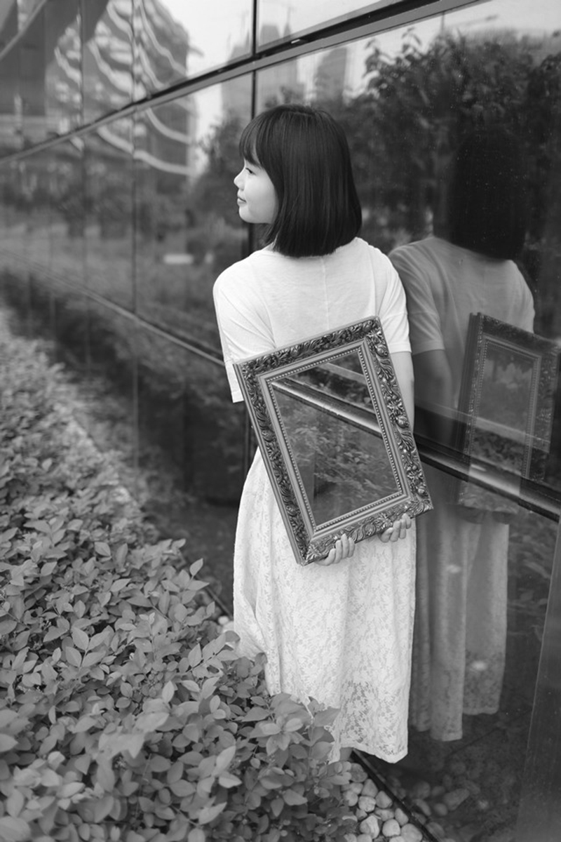 本课题以室外为主题进行拍摄,用观念摄影的形式来表达。我选择了女孩拿镜框的画面,镜内反射出女孩身后的风景。在拍摄中,运用了观念摄影的表达方式,将两张画面无接缝的拼贴成一幅完整的画面,以此来表达忧郁、怀旧、发自内心的心情,及对人类思想的剖析。在这个设计作品中,我运用适合的表达方式来表现我个人内心世界的观念为主要目的。我想运用此次作品指明一种思想和表达的方式,来表现人的一种状态,一种情绪。