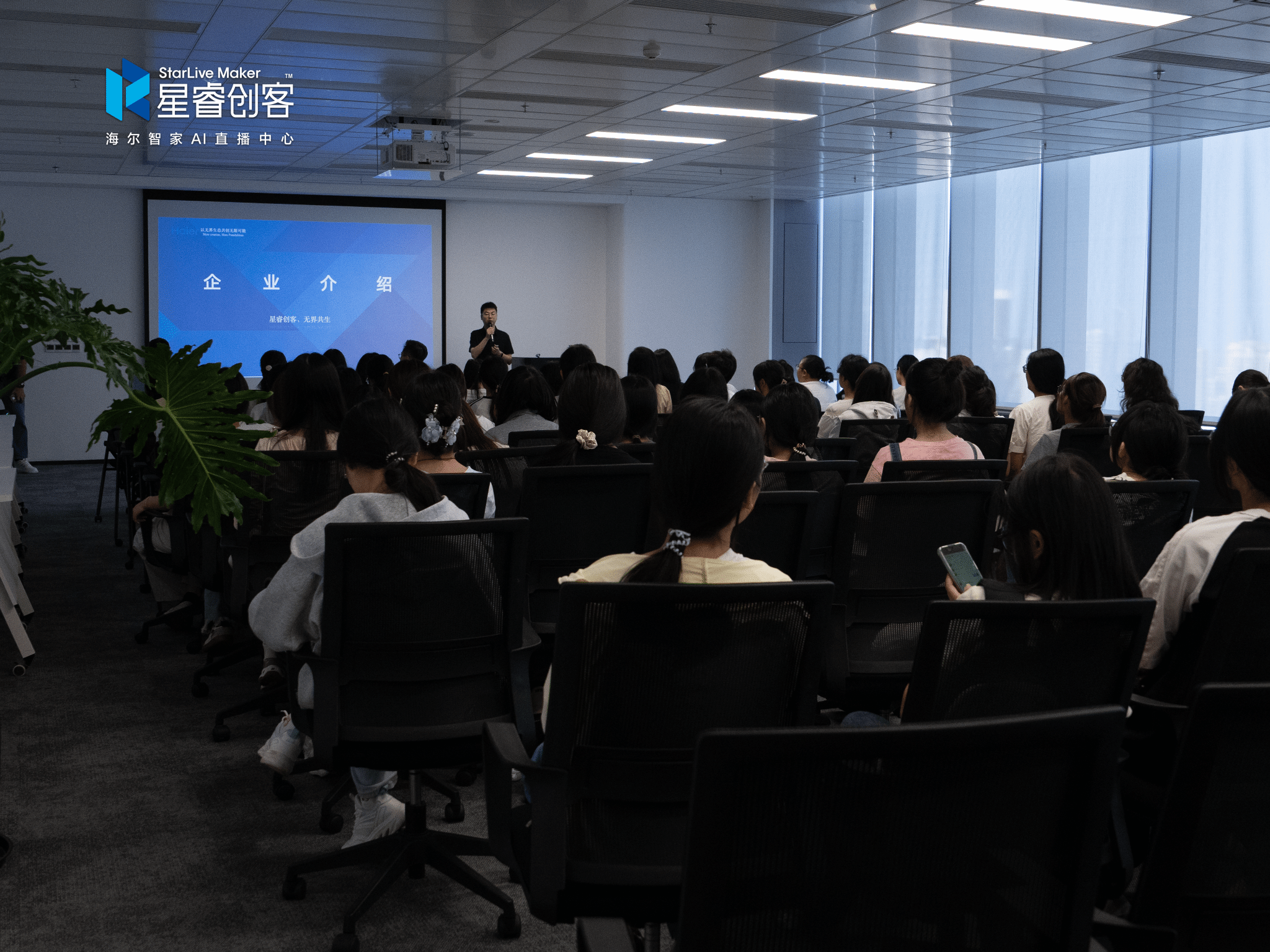 座谈交流中,校招经理朱连平详细介绍了海尔智家AI直播中心发展情况,分享公司的全球研发布局、智能智造进展及中国区业务规划,通过创客成长故事与合作案例展现行业竞争力;同时详细介绍了人才生态体系,提及有竞争力的薪酬结构及节庆福利、健康管理等保障措施,凸显对人才的重视。直播能力总监刘丽红从双维度补充分享,梳理直播行业发展历程与未来趋势,介绍公司业务优势、后勤保障政策,重点讲解分层培训计划与职业晋升路径,让师生深入了解企业员工成长规划。