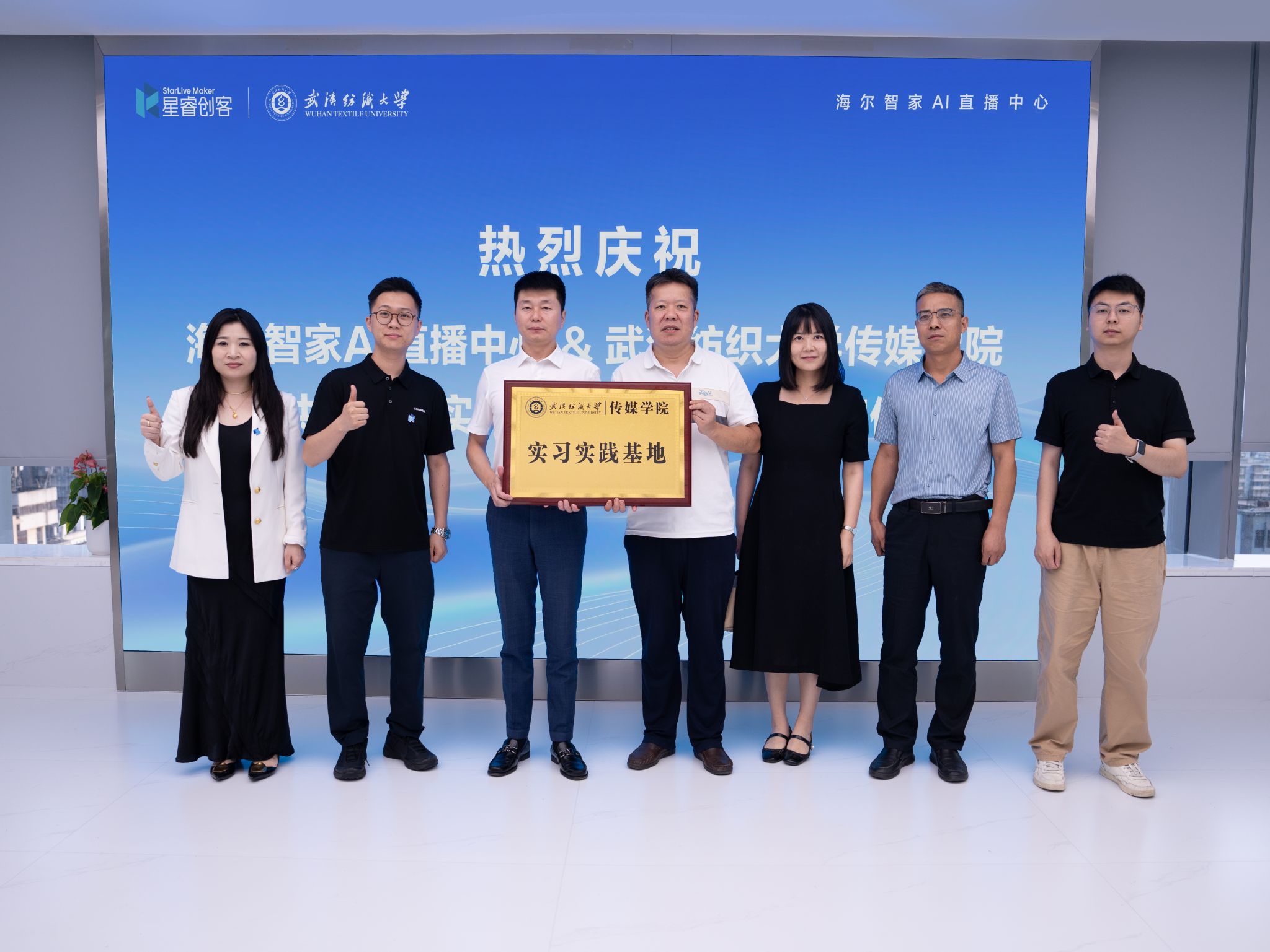 望海军院长对海尔智家AI直播中心的热情接待与合作诚意表示感谢,随后从学院发展历史、学科专业特色、“理论 + 实践”双轨人才培养理念、学生就业方向与成长优势等方面作详细介绍。他指出:“海尔智家-星睿创客传媒在新媒体、直播电商领域拥有丰富的行业资源与成熟的实践平台,其业务方向与学院相关专业人才培养目标高度契合,双方具备深度合作、可持续发展的坚实基础。此次带领 80 名学生实地访企,既是落实‘访企拓岗’专项行动的具体举措,也是让学生‘走进企业、认知行业’的重要实践教学环节。”他进一步表示,希望以此次合作为起点,在实习实践基地建设、课程内容共建、企业导师聘任、行业专题讲座等方面深化合作,推动学院人才培养体系更贴合行业发展需求,助力学生提升职业竞争力,为企业和社会输送更多高素质应用型人才。