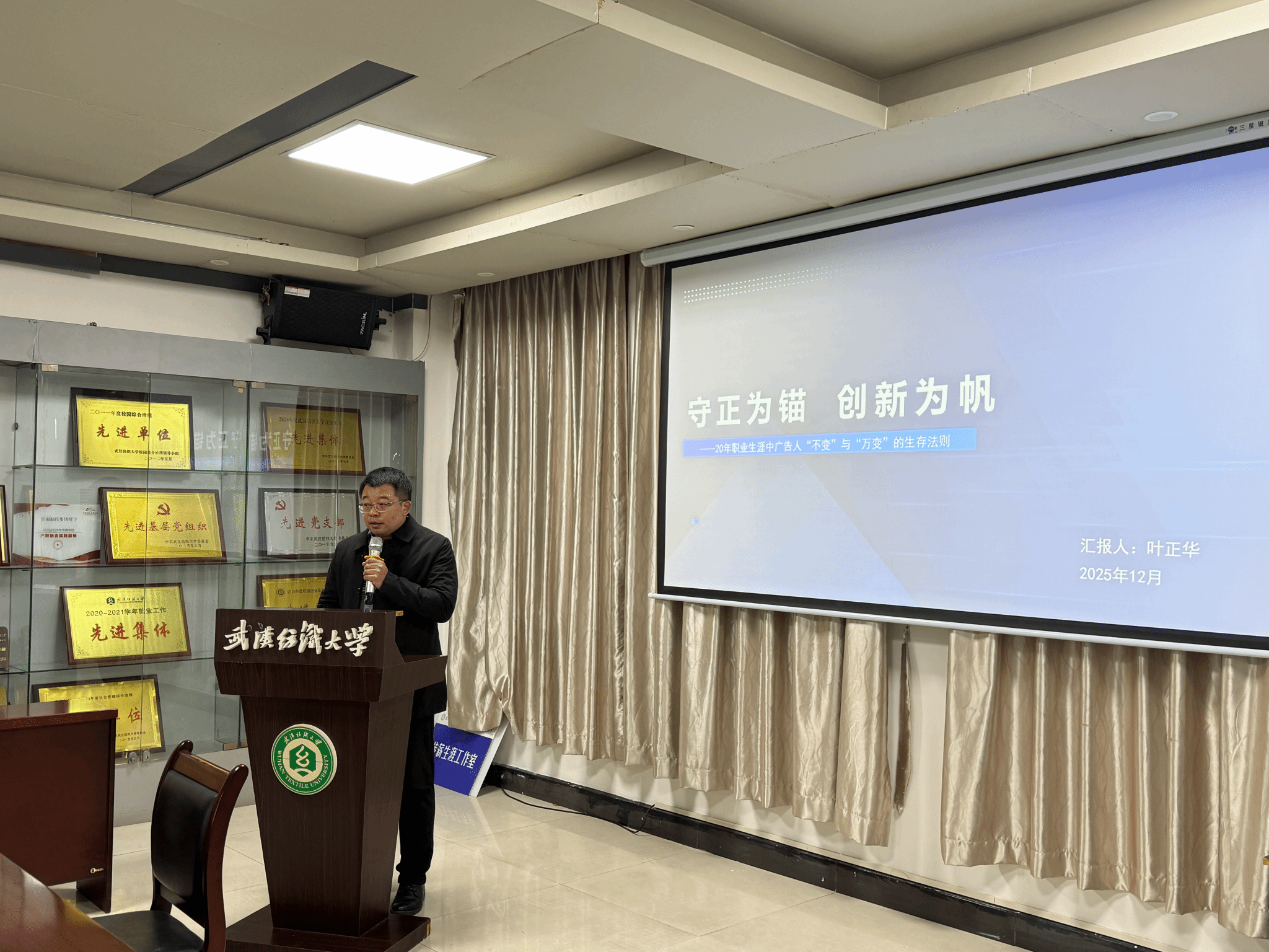 校友叶正华在随后的传媒校友论坛・职业生涯发展论坛上,结合自身二十载体制内宣传工作的经验,深入浅出地剖析了传媒产业变迁与个人价值实现路径,鼓励同学们找准定位、深耕专业,在人生的舞台上尽情绽放光彩。