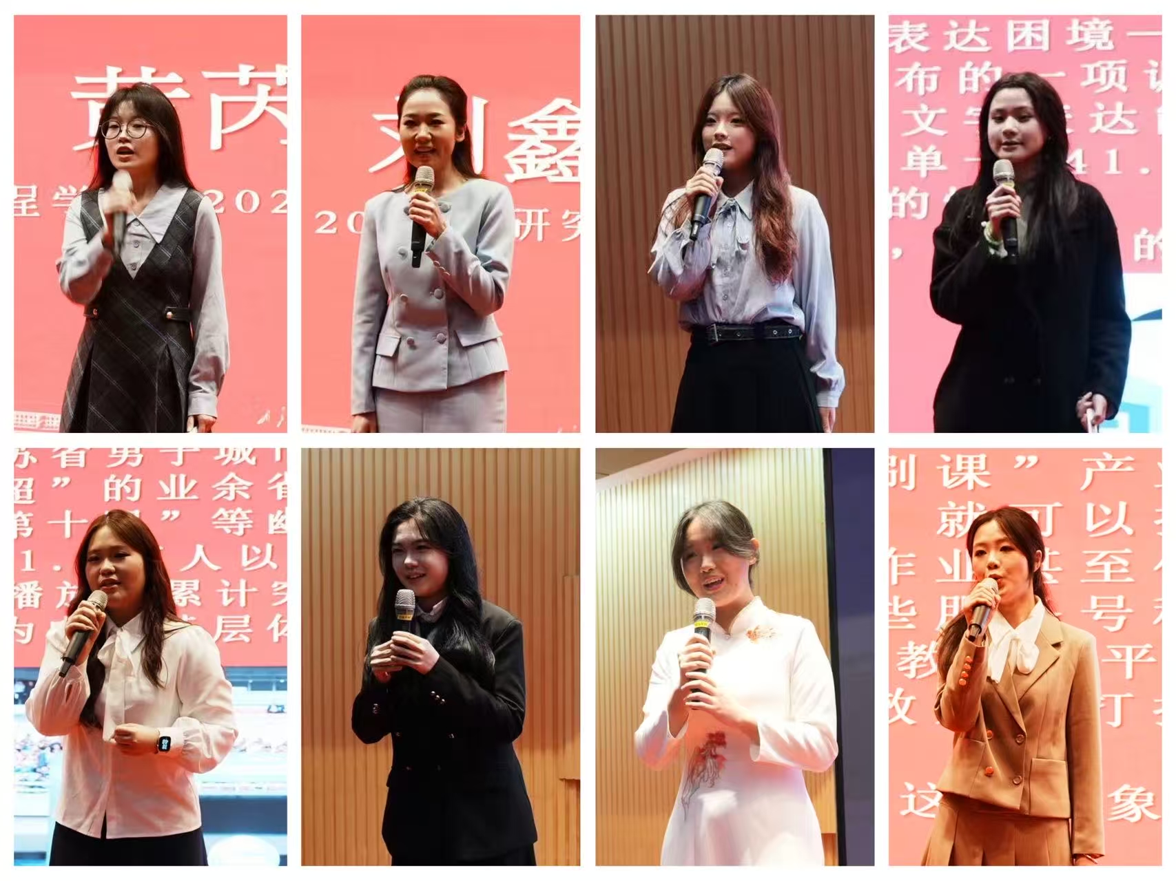 第三轮即兴评述环节将比赛推向高潮,选手随机抽取社会热点话题,如太空救援、“苏超”出圈、“鸡排哥”爆火、奶皮子糖葫芦热等,进行逻辑清晰、观点鲜明的精彩即兴阐述,展现出扎实的语言功底与应变能力。比赛还设置了互动抽奖环节,进一步活跃了现场气氛。