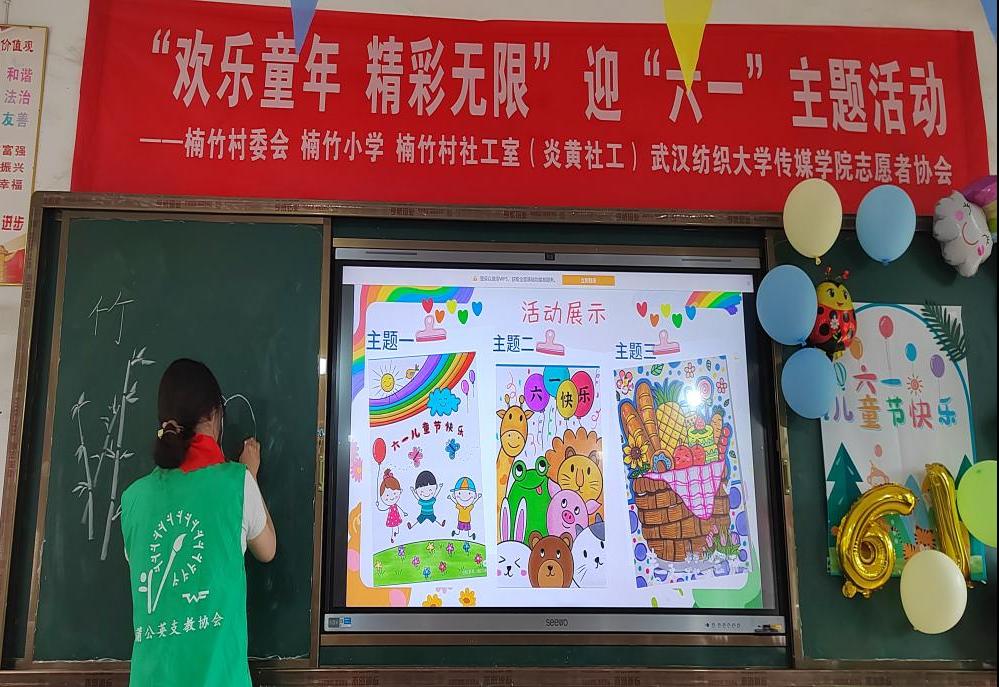 “姐姐,姐姐,你看我画的好看吗?”6月1日,鄂州市楠竹小学教室里一片欢声笑语,由楠竹村委会、楠竹小学、炎黄社工主办,伟德国际1946bv官网承办的“欢乐儿童•精彩无限”——楠竹村儿童节活动正火热进行。