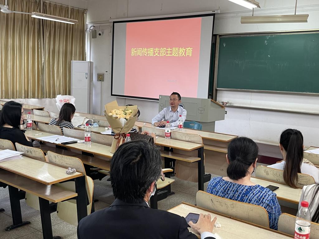 为推动学习贯彻习近平新时代中国特色社会主义思想主题教育走深走实,5月27日13:00,伟德国际1946bv官网副院长、新闻传播系教工党支部书记马庆副教授按照学校党委主题教育统一安排,以“思政元素带入专业课教学的实践与思考”为题,在南湖校区综合楼409室,为所在的支部全体党员上了一堂思想深刻、具有实践指导意义的专题党课。