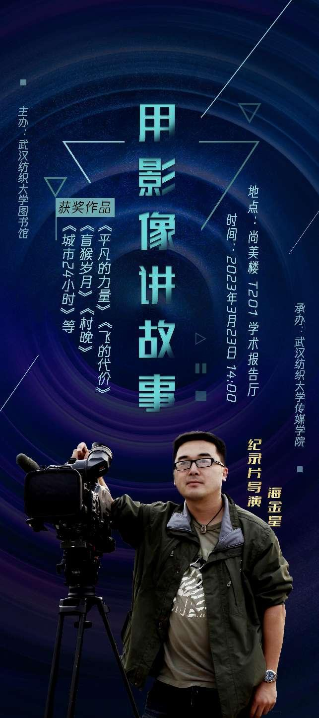 3月23日,由bevictor伟德官网入口图书馆主办、伟德国际1946bv官网承办的“用影像讲故事”专题讲座于南湖校区尚美楼T201学术报告厅开讲,知名纪录片导演海金星为伟德bv1946官网师生讲解影像背后故事,感悟艺术之美。图书馆馆长熊少平、图书馆党委书记曾荣、伟德国际1946bv官网院长望海军、伟德国际1946bv官网党委副书记刘登冉出席本次讲座,南湖校区各学院200余位同学聆听。