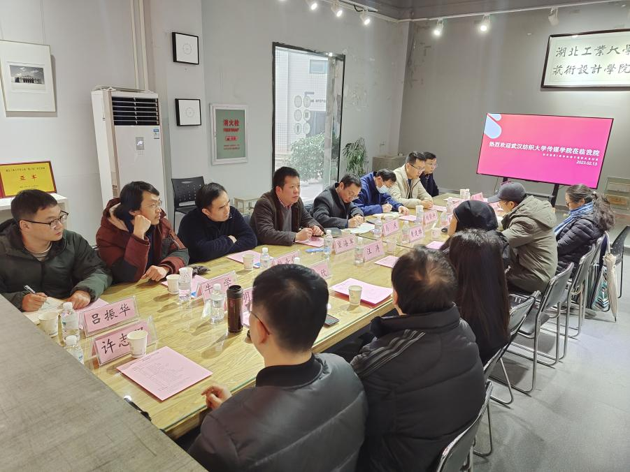 湖北工业大学艺术设计学院党委书记黄建雄、院长汪涛、副院长周承君、副院长王欣、视觉传达系主任孙明海、数字媒体系主任彭立、竞赛办主任刘涛、办公室主任赵毅等共同出席了交流会。