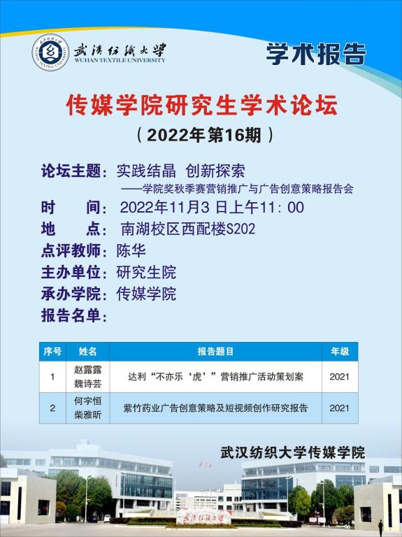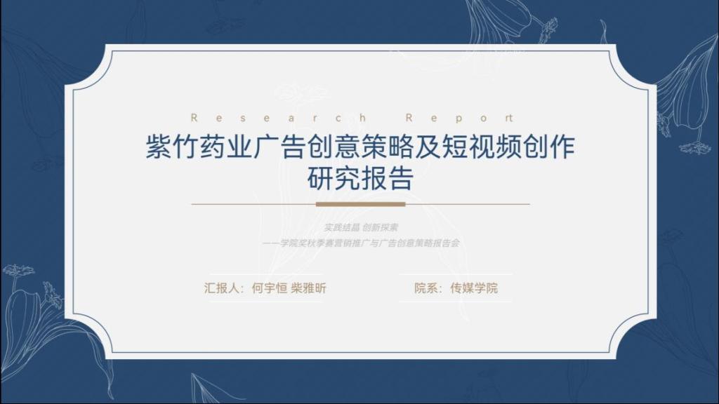 何宇恒和柴雅昕小组则以紫竹药业的蜂胶口腔膜为主题进行了短视频创作,本次论坛他们阐述的主题是《紫竹药业广告创意策略及短视频创作研究报告》。在报告中,他们对“‘膜’力去溃疡”的广告主题、快速愈合的产品调性进行了概述,通过对市场环境及产品的分析,总结了紫竹蜂胶口腔膜具有止痛快、促愈合、成分安全、舒适性好四大卖点。他们最终以大学生群体为主要目标消费群,以抖音为主要的媒体平台,选取了快速愈合这一卖点进行了短视频的创作。短视频的创作主要以意象表达的方式,阐明了辛辣油腻的食物会造成严重的口腔溃疡,而使用紫竹蜂胶口腔膜能快速促愈合,使得口腔更健康。
