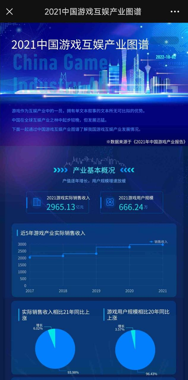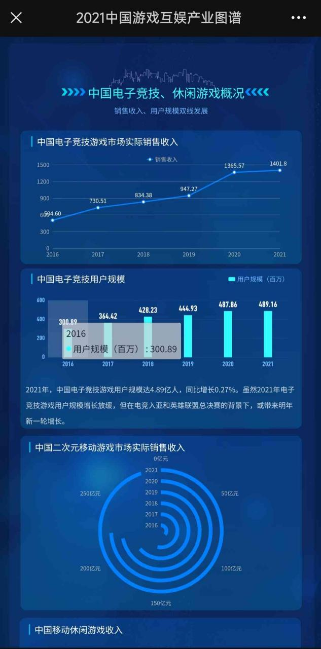 由2021级新闻传播专业2109班研究生段志强、陈彬柔、张士伊、王婧怡、王梓卉同学共同创作的数据新闻类作品《2021中国游戏互娱产业图谱》获得本次大赛的三等奖。图谱从产业基本概况、营收情况概况、非移动端发展情况、中国电子竞技、休闲游戏概况、互娱产业发展建议等多个角度深入分析,同时引入大量实用数据和各类图表,更直观清晰地反映出产业发展情况,多方面解读和剖析产业问题,提出有实践性意义的建议和措施。