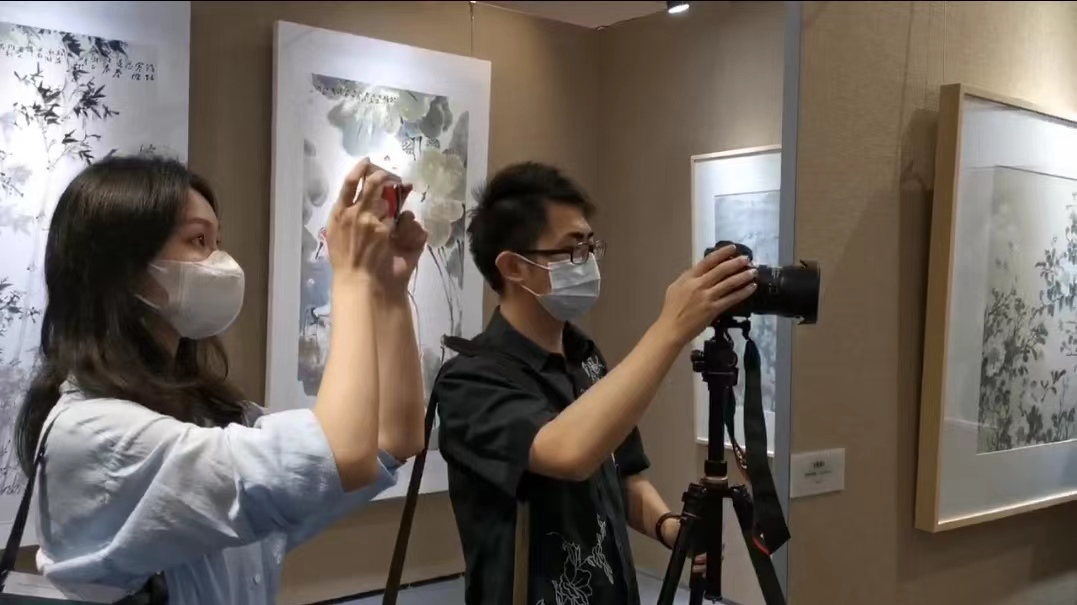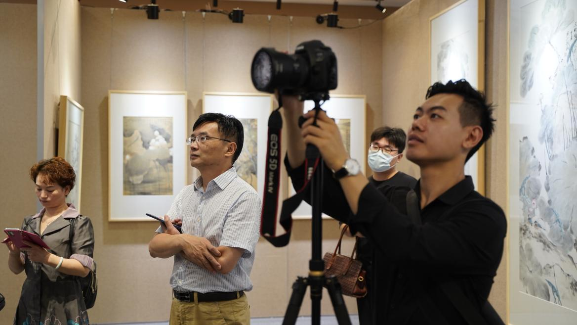 活动过程中,导师荣建华教授指导学生们以小组形式有组织地进行视频与图片拍摄,运用广播电视、新闻传播学相关知识和技能,在博物馆和画展现场创作与拍摄新闻和纪录片。